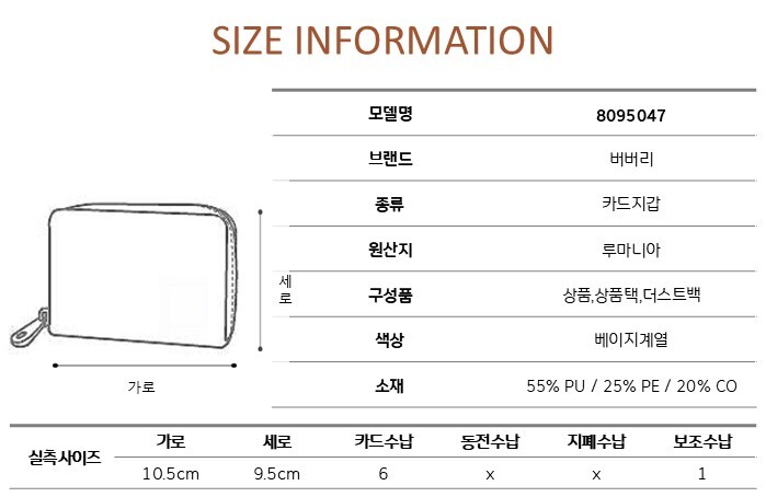 [명품] 버버리 톨 체크 공용 카드지갑 / 8095047