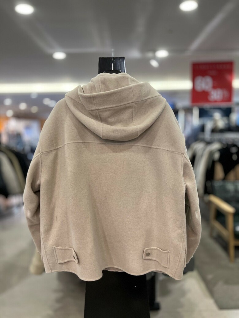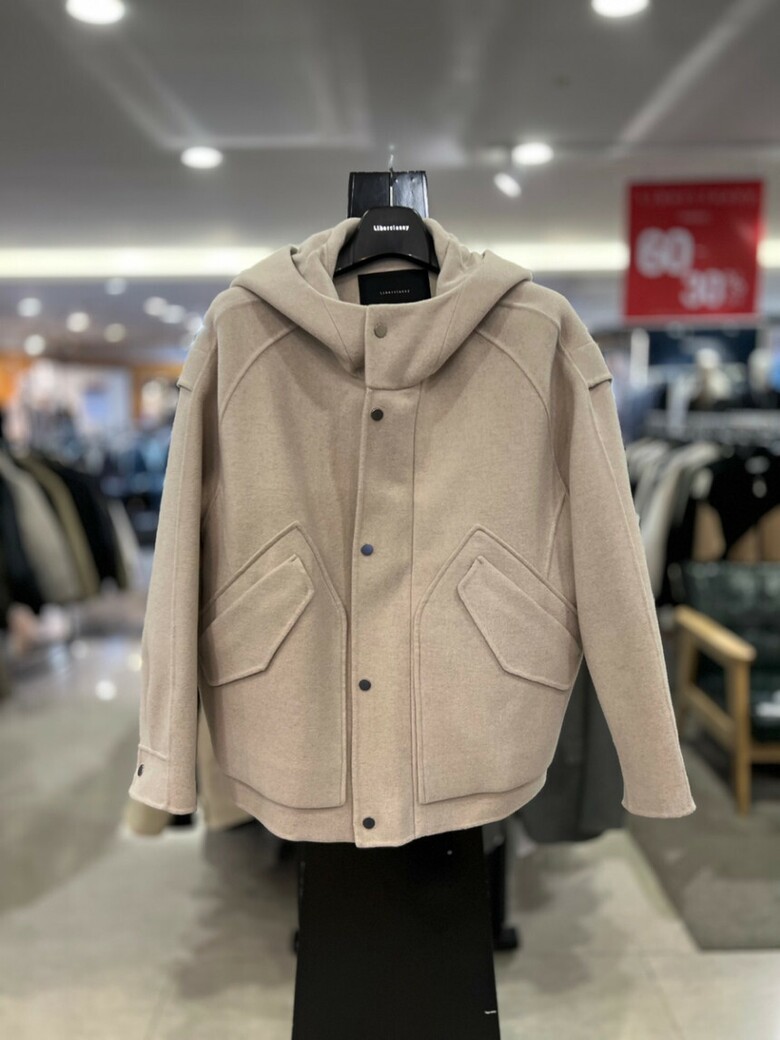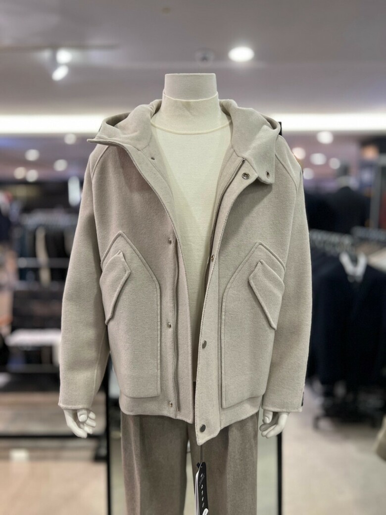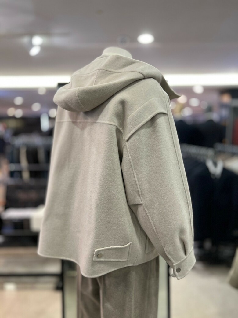리버클래시 아이보리 캐시미어 혼방 구스다운 핸드메이드 숏후드 코트 LKW21494