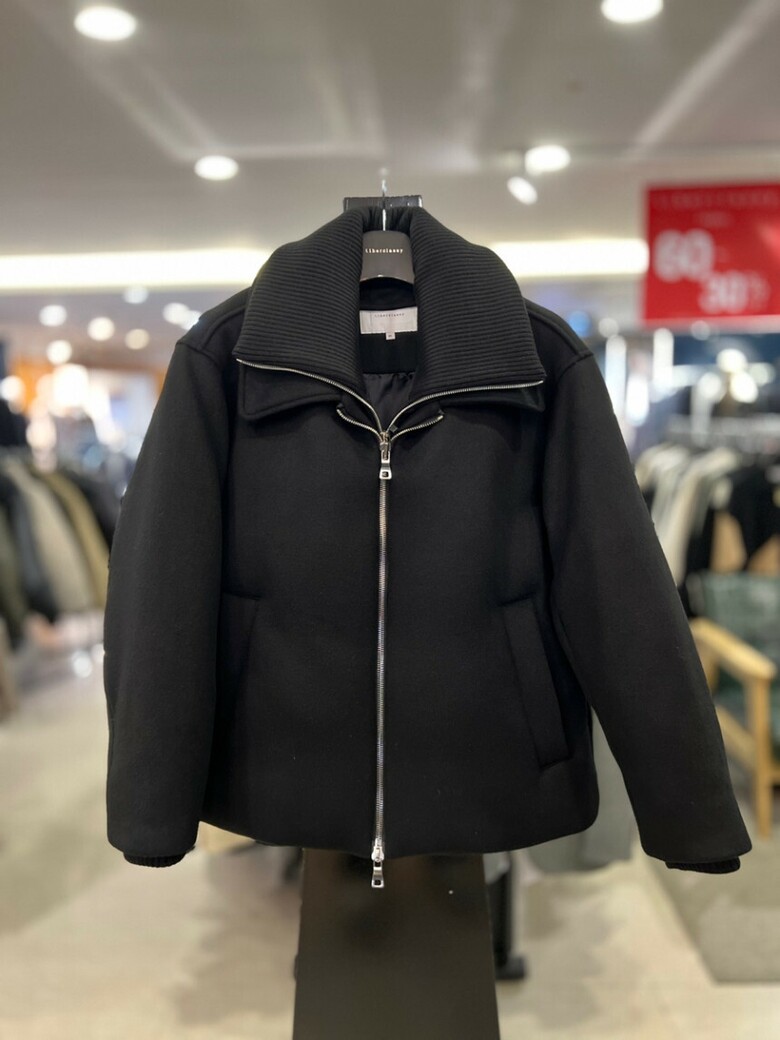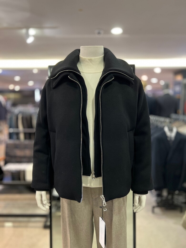 리버클래시 블랙 모100 하이넥 레이어드 구스다운 숏점퍼 LKW22473
