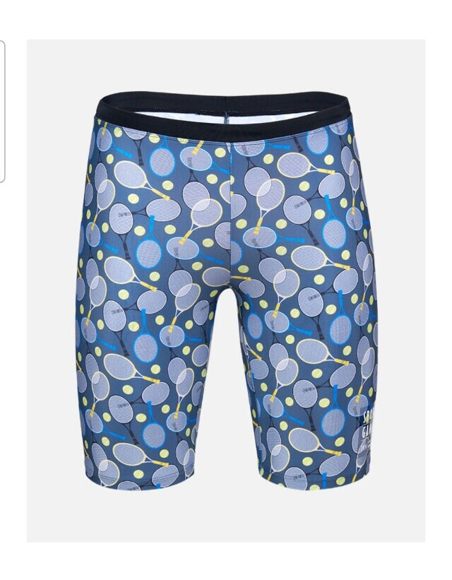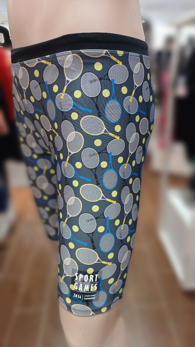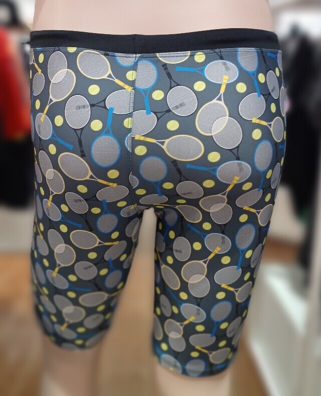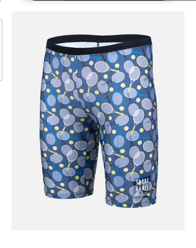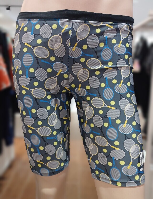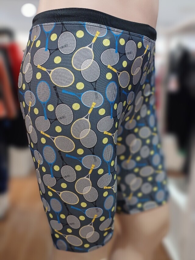 전체 테니스라켓 패턴으로 체형커버에 도움이 되는 남성 4부 수영복입니다