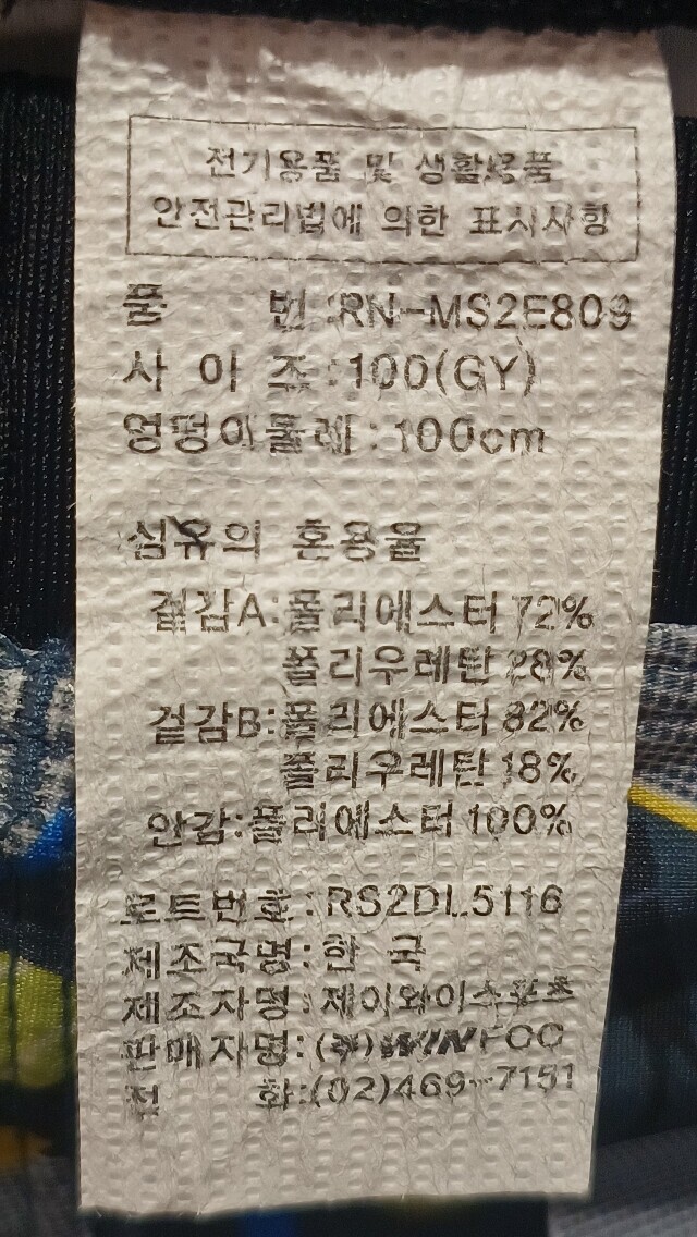 | 1. 제품 소재 (섬유의 조성 또는 혼용률을 백분율로 표시, 기능성인 경우 성적서 또는 허가서) | 상품상세참조 |