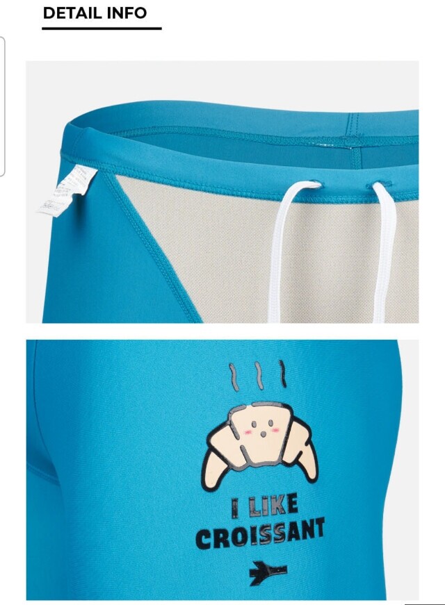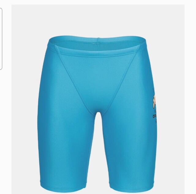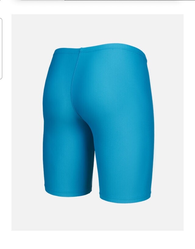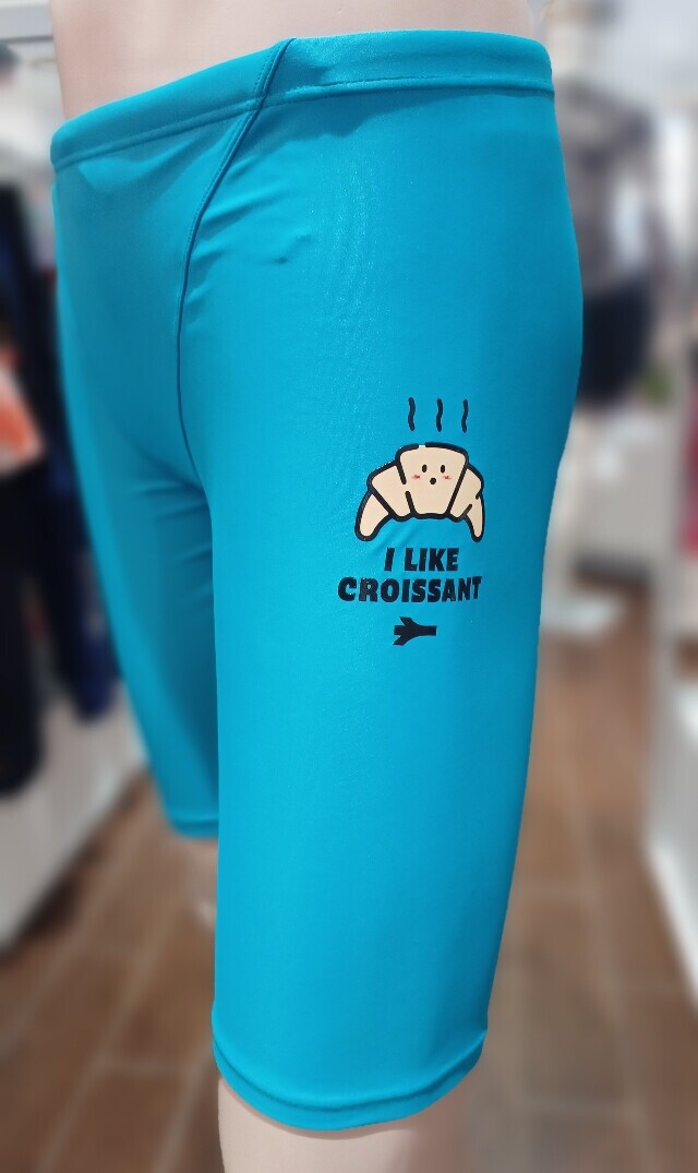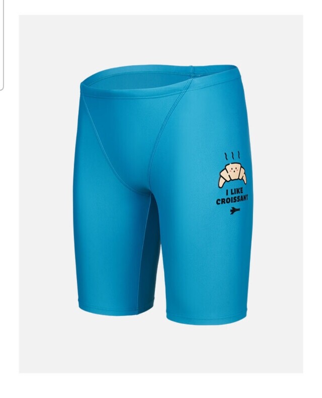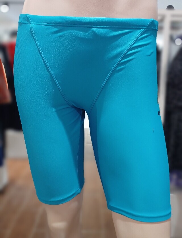 아쿠아 블루 컬러가 포인트인 남성 4부 수영복입니다.