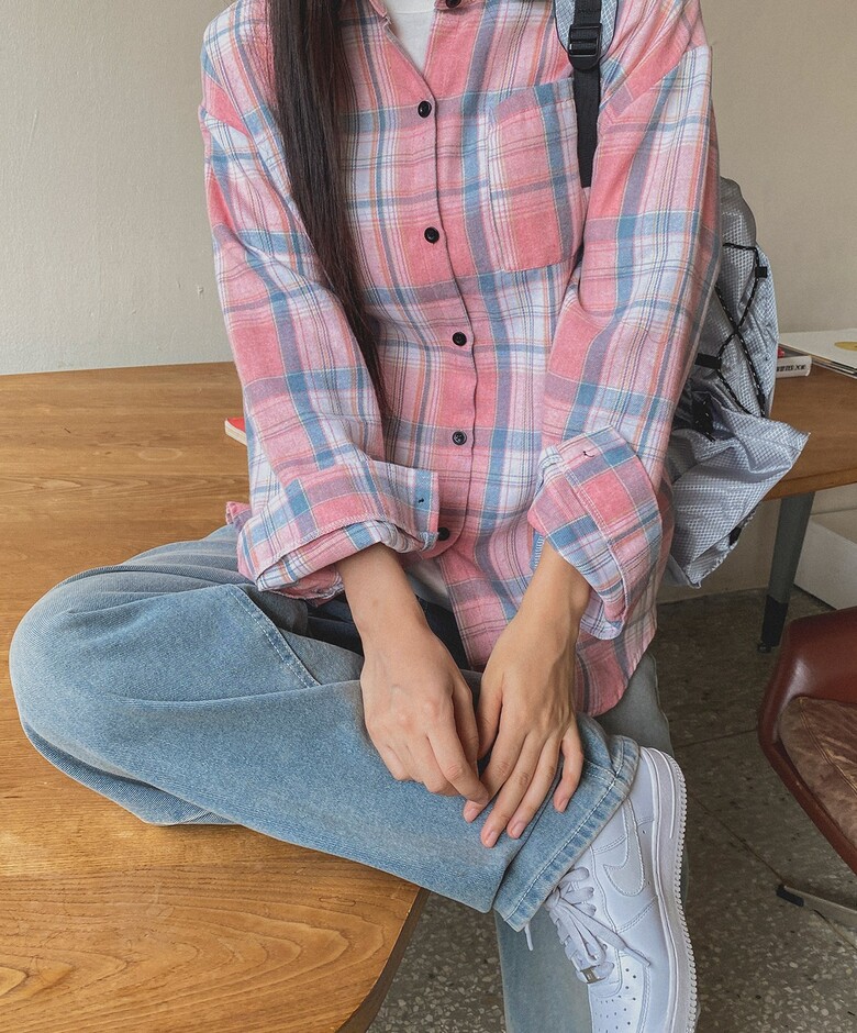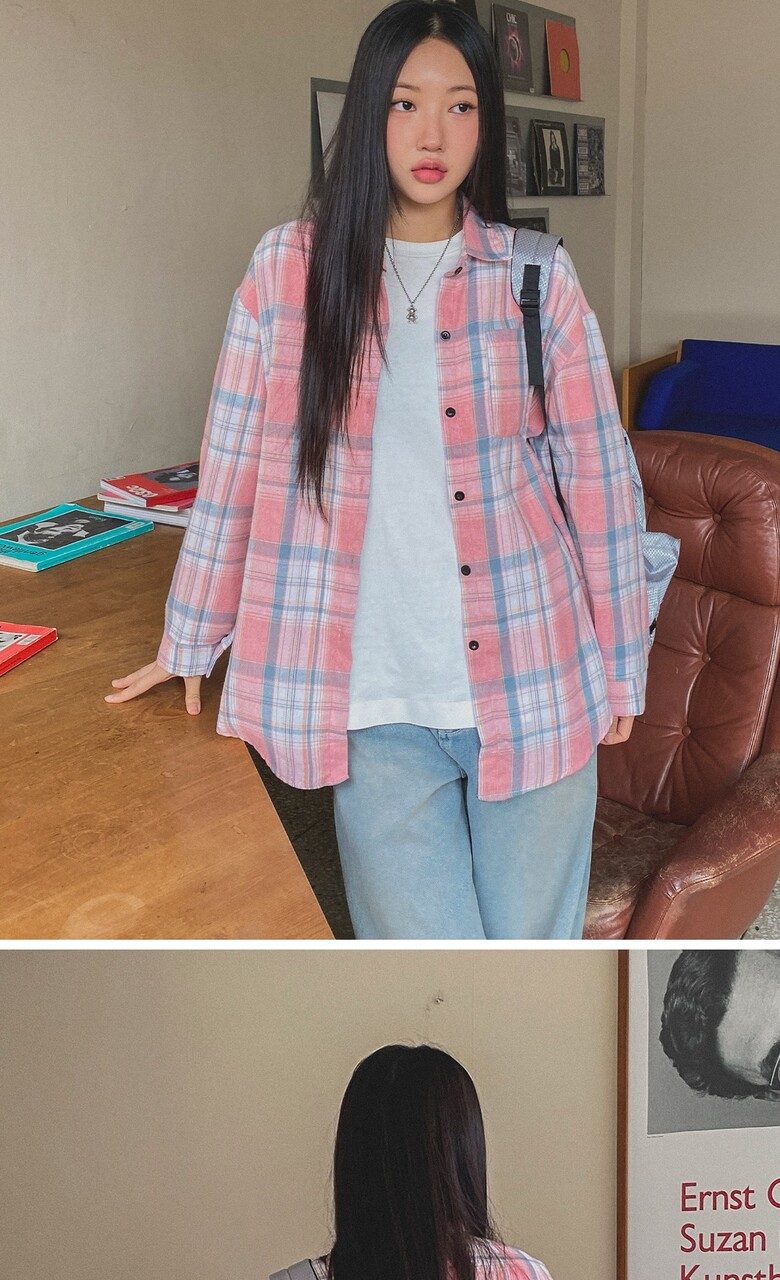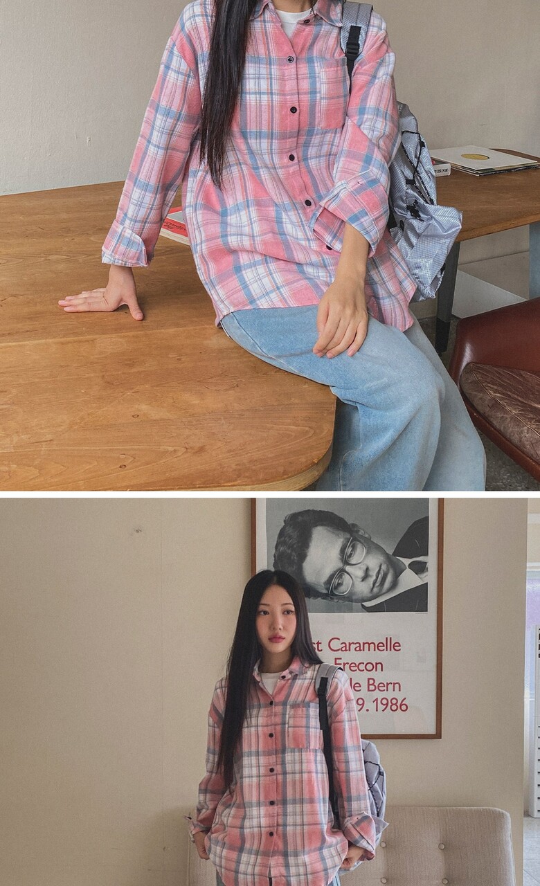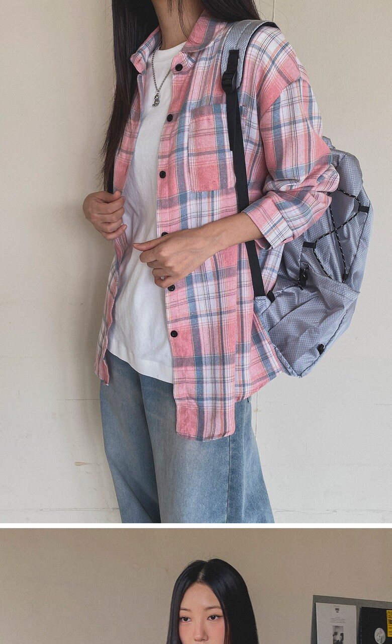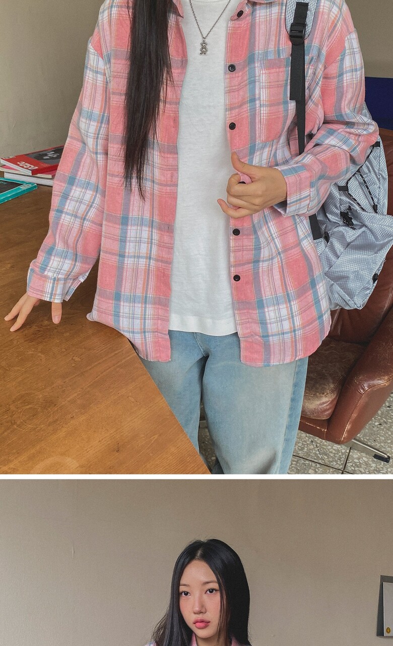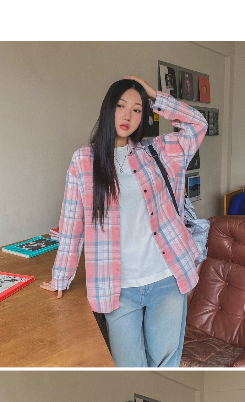 네쥬 여성 가을 기본 루즈핏 체크 패턴 캐주얼 긴팔 남방