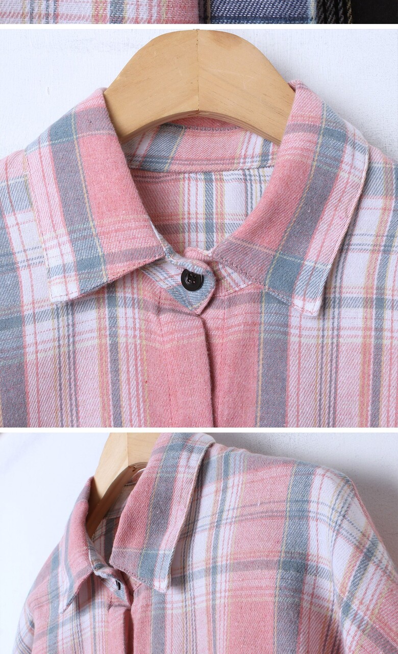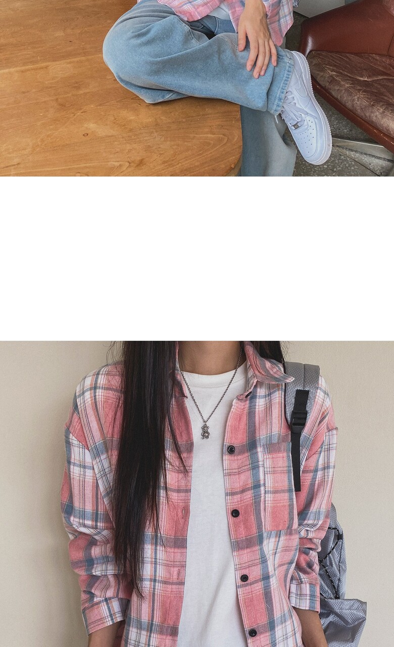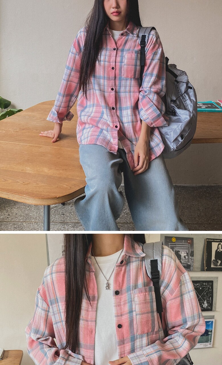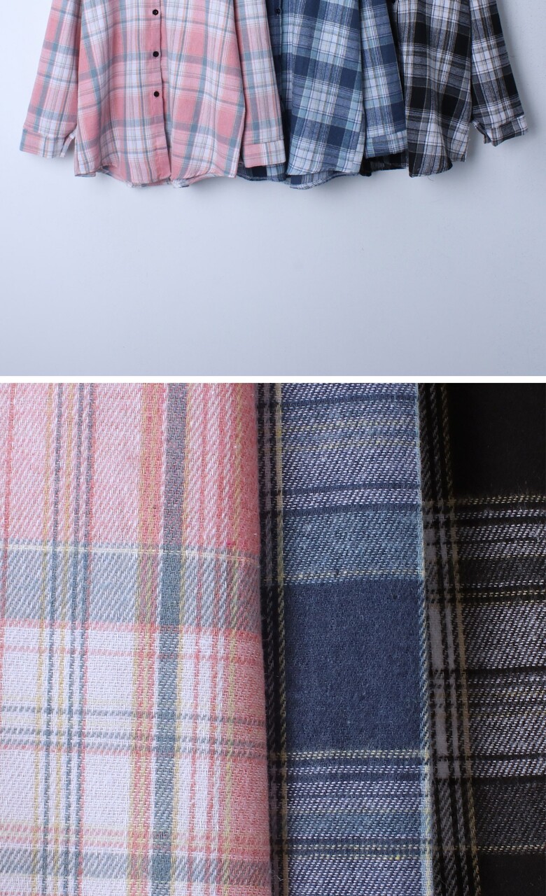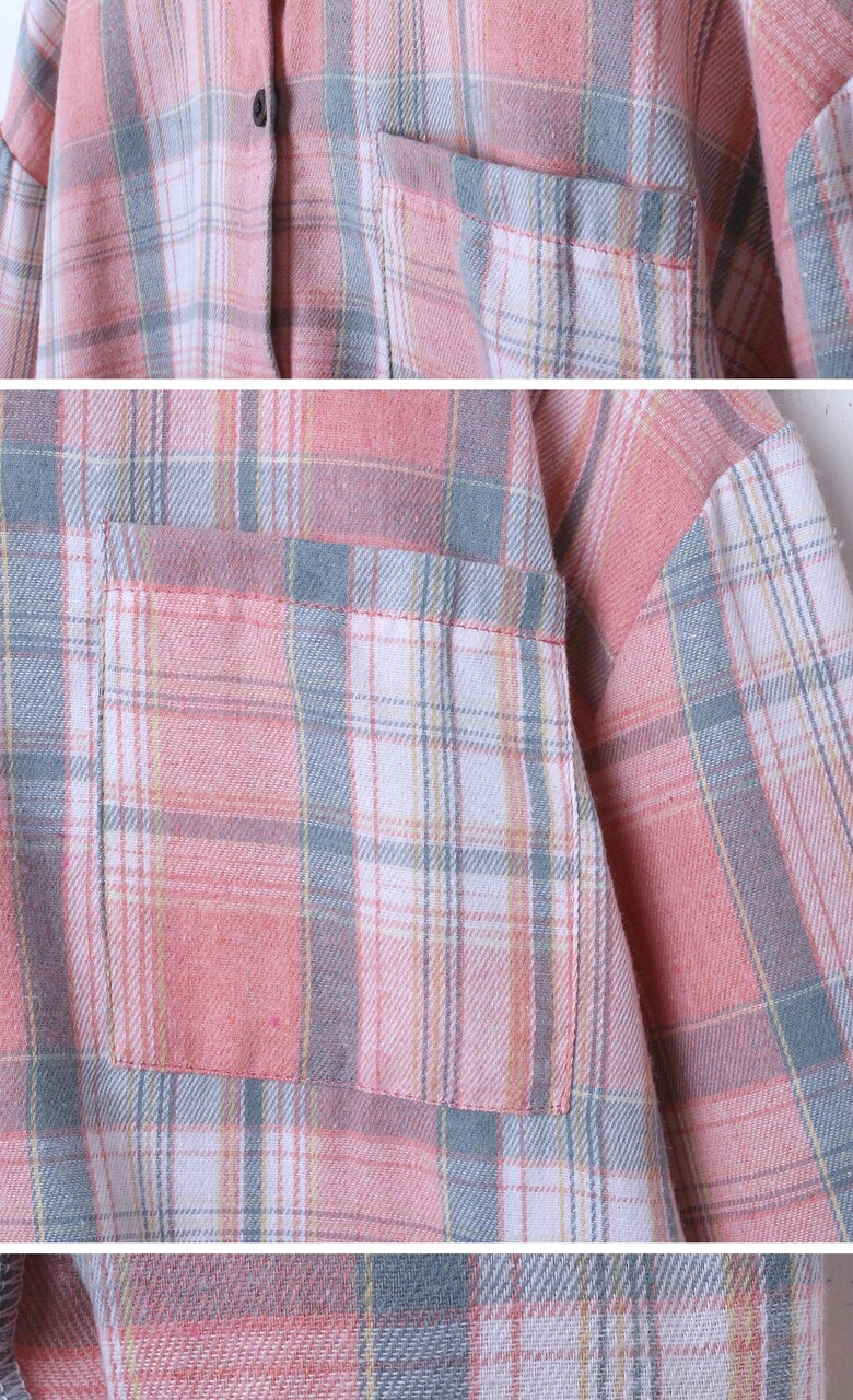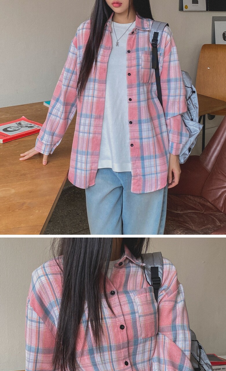 네쥬 여성 가을 기본 루즈핏 체크 패턴 캐주얼 긴팔 남방