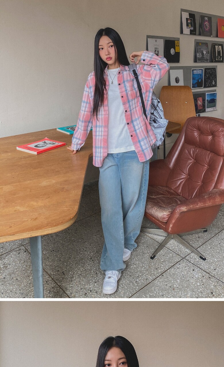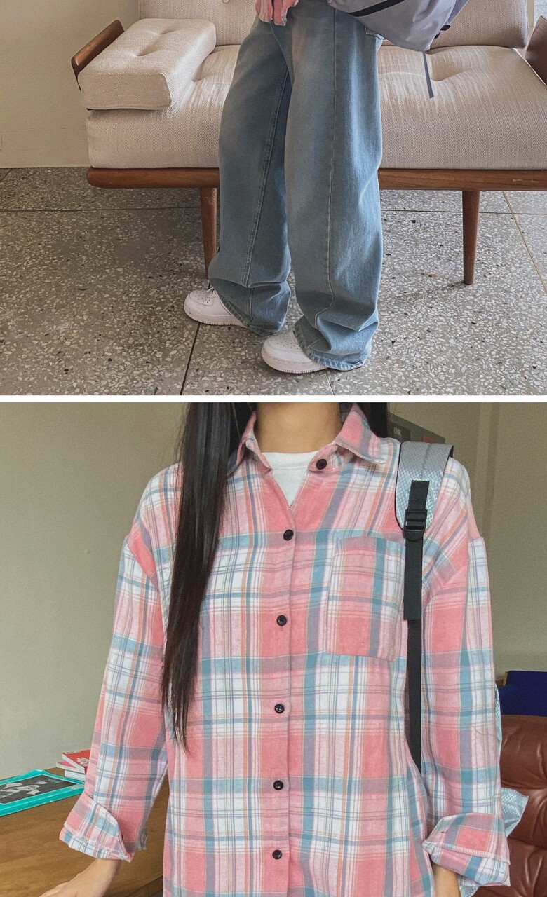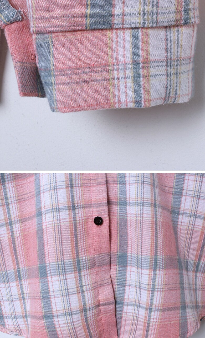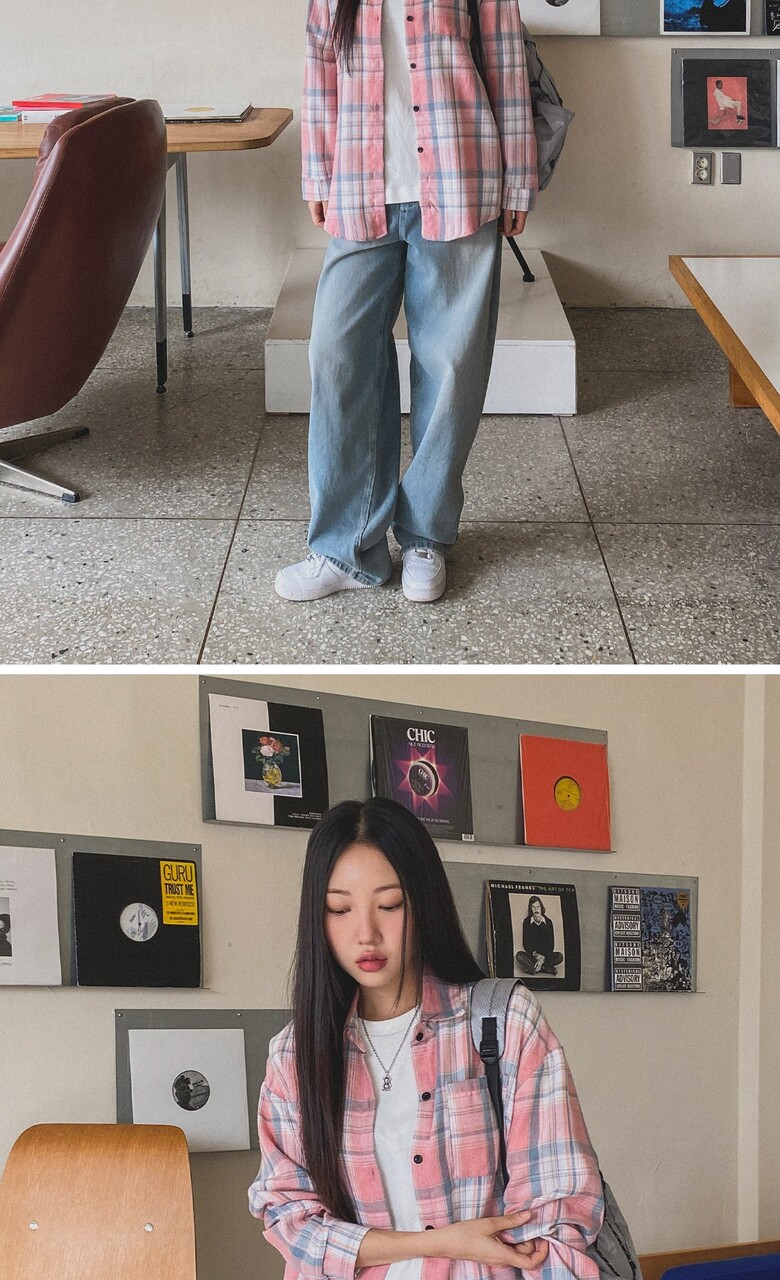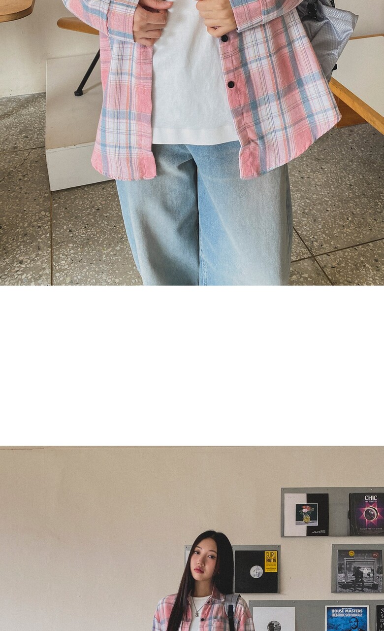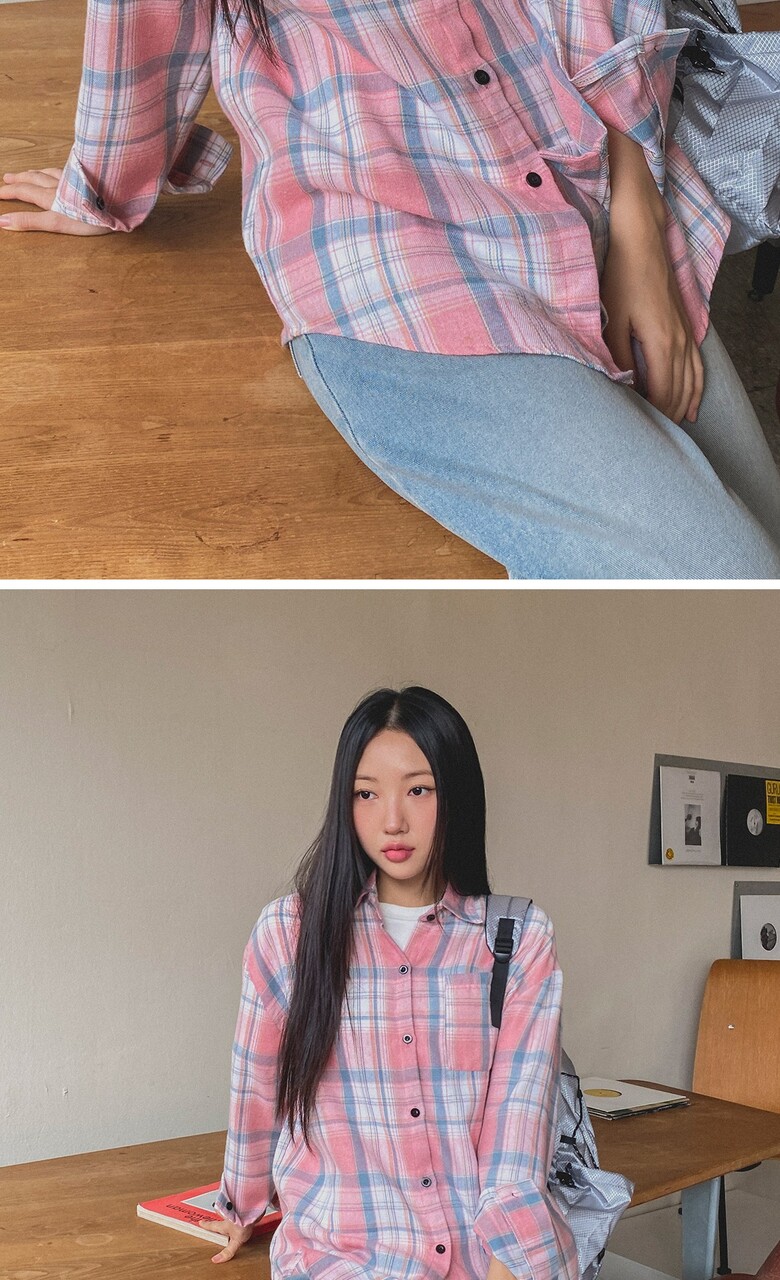 네쥬 여성 가을 기본 루즈핏 체크 패턴 캐주얼 긴팔 남방