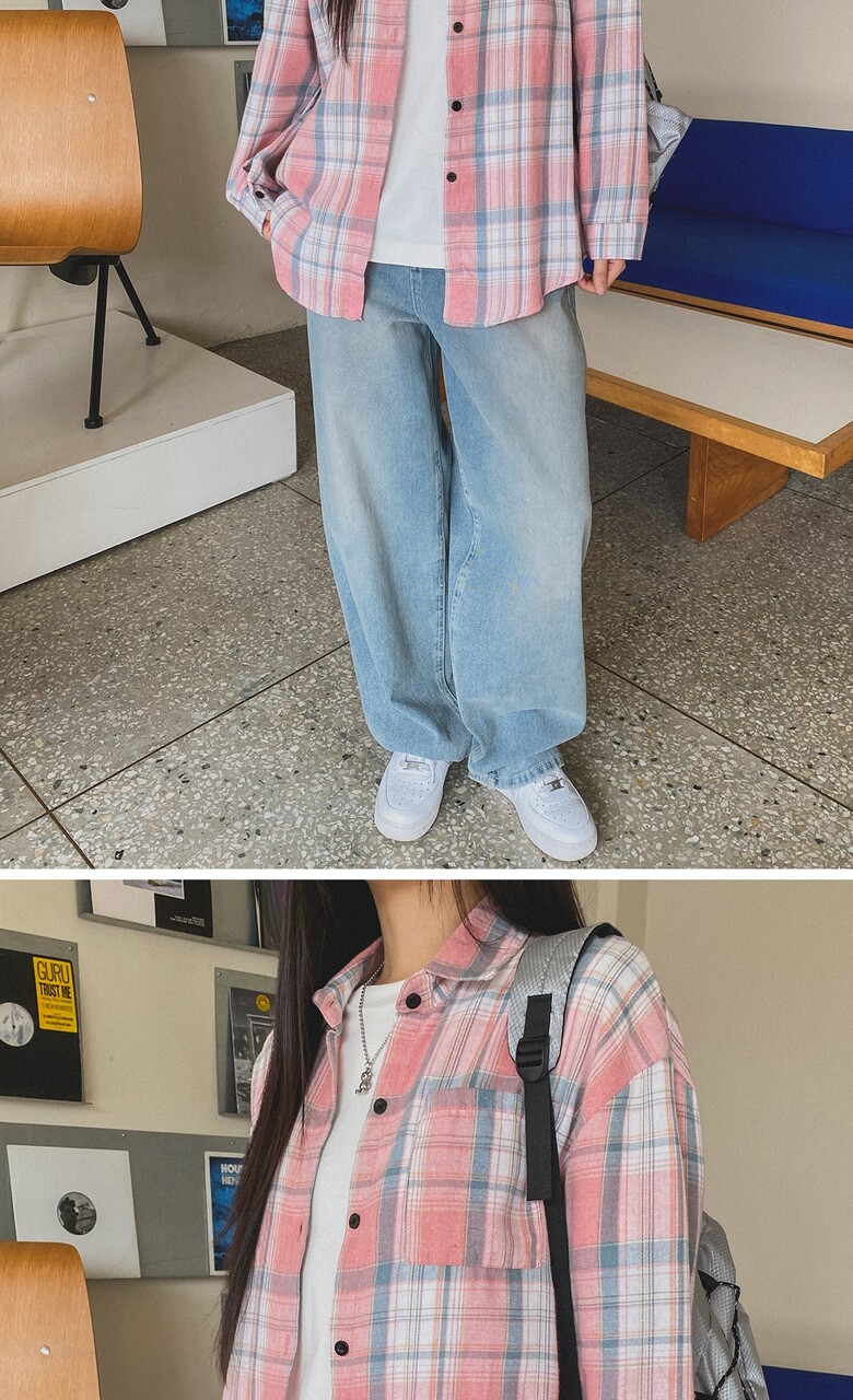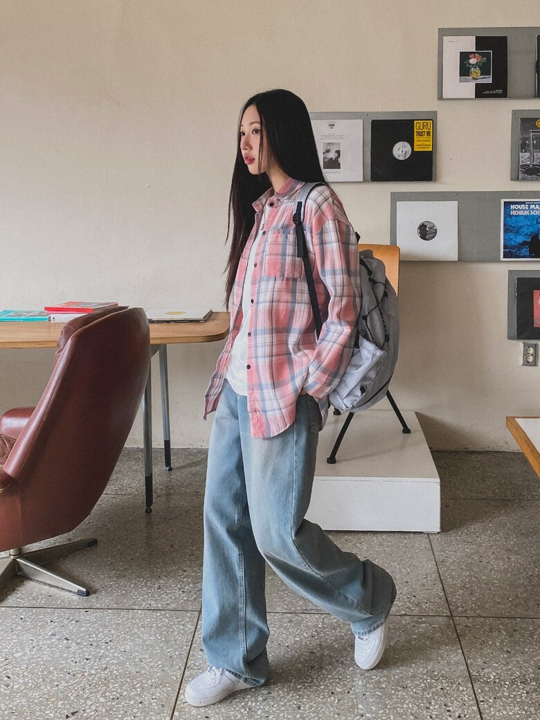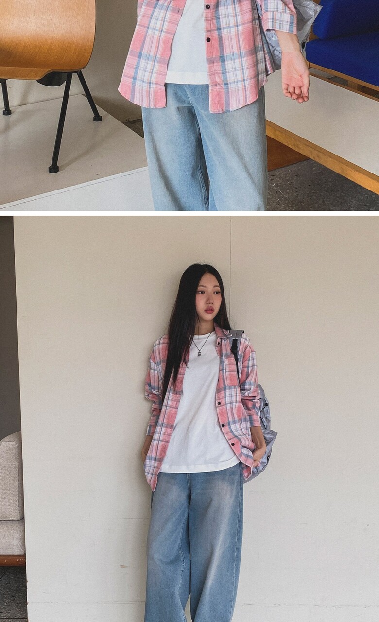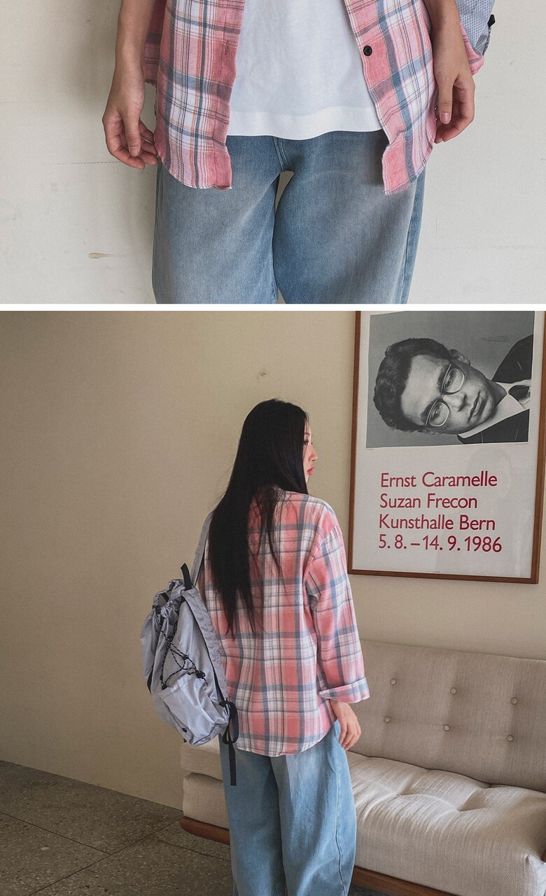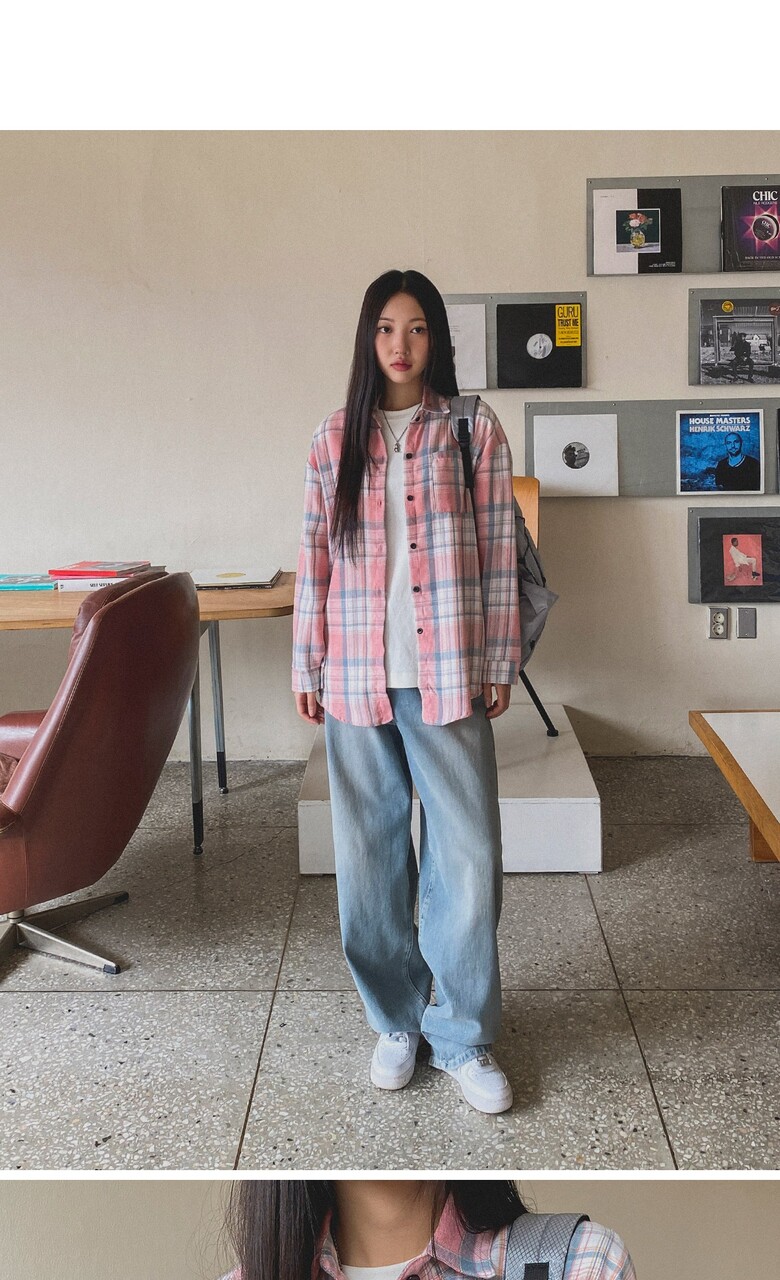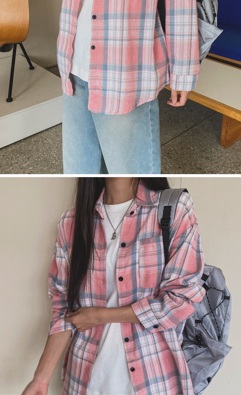 네쥬 여성 가을 기본 루즈핏 체크 패턴 캐주얼 긴팔 남방