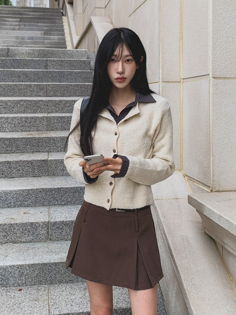 네쥬 여성 가을 기본 라운드넥 무지 데일리 예쁜 울 가디건