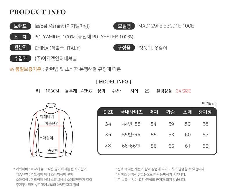 | 6. 세탁방법 및 취급시 주의사항 | 상품상세 참조 |