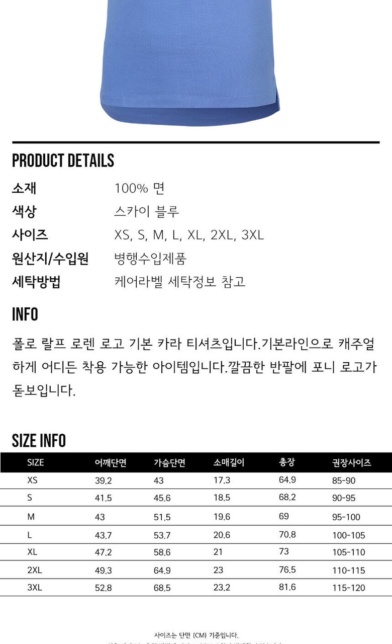 폴로 랄프 로렌 로고 카라 티셔츠 710782592-012 스카이블루