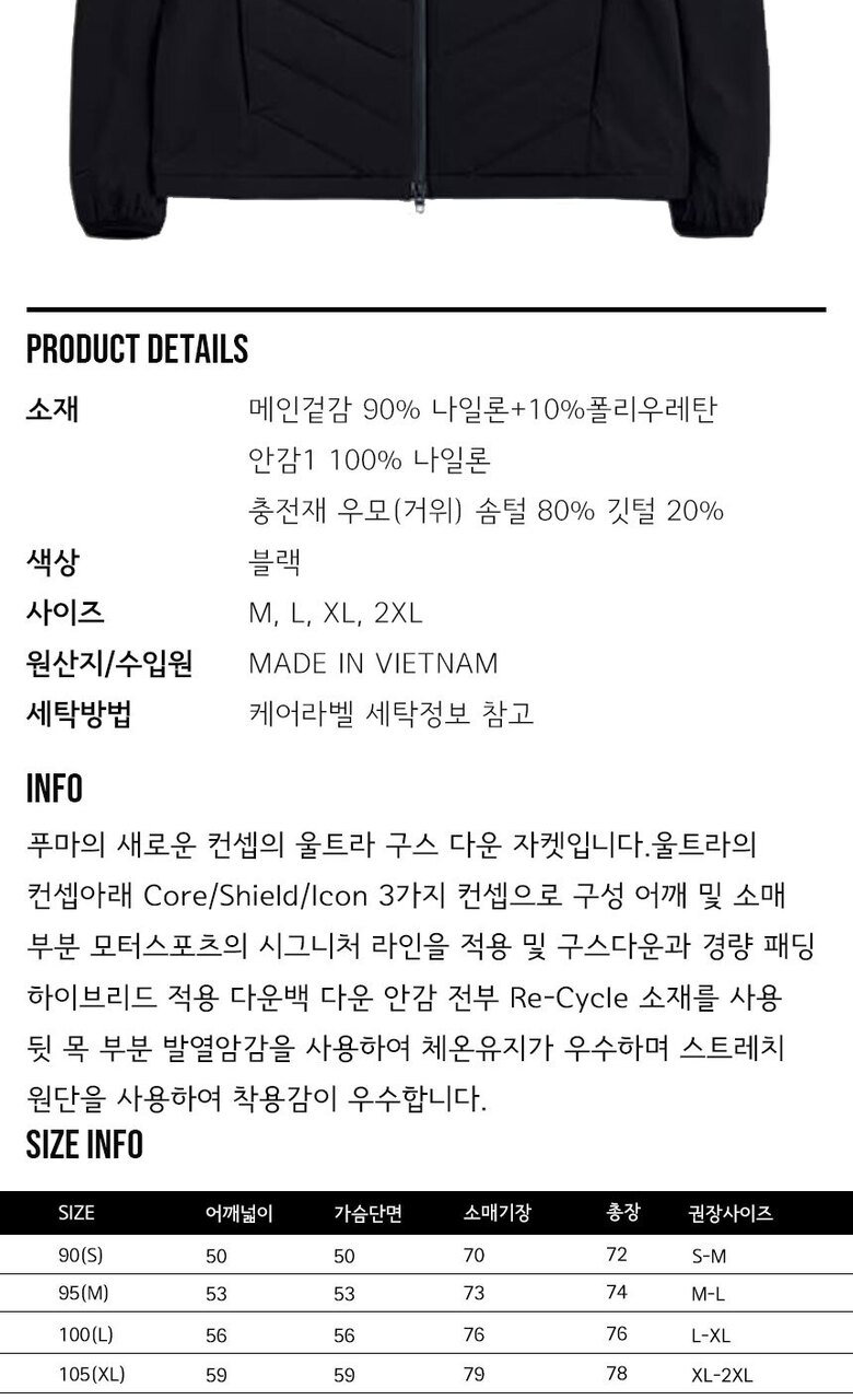 푸마 울트라2 쉴드 구스 하이브리드 자켓 94016201