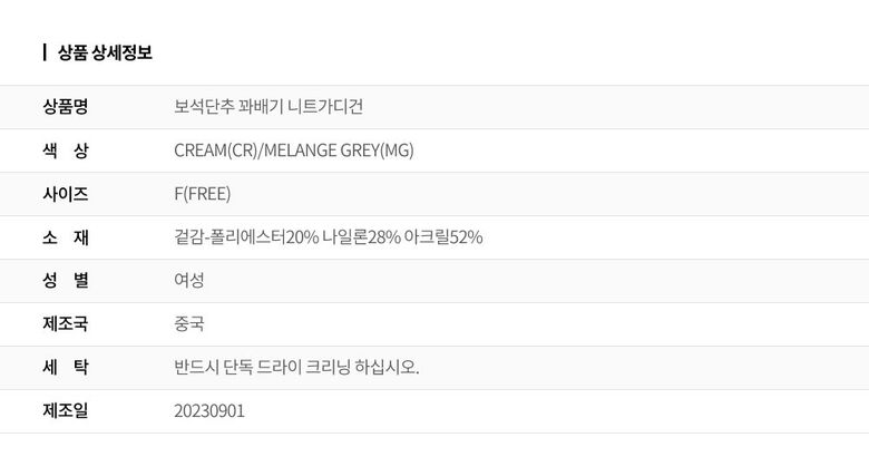 2. 색상 색상:CREAM(CR)/MELANGE GREY(MG)