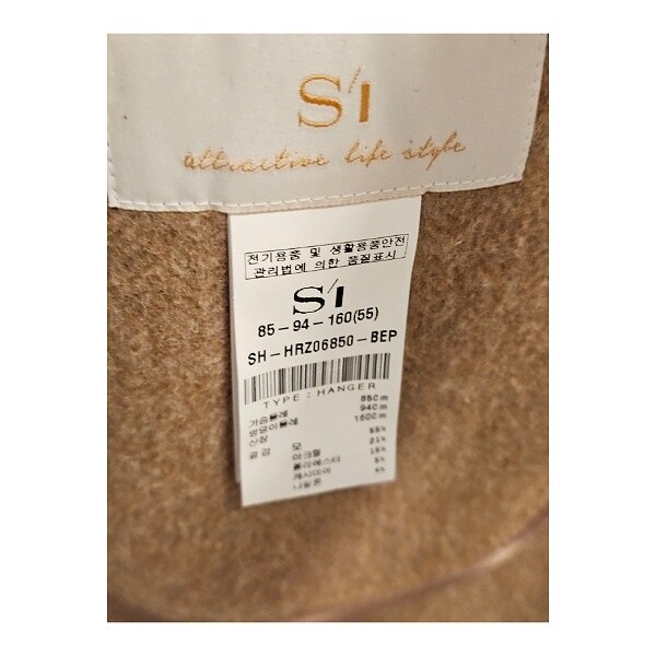 | 1. 제품 소재 (섬유의 조성 또는 혼용률을 백분율로 표시, 기능성인 경우 성적서 또는 허가서) | 모55%아크릴21%캐시미어5% |