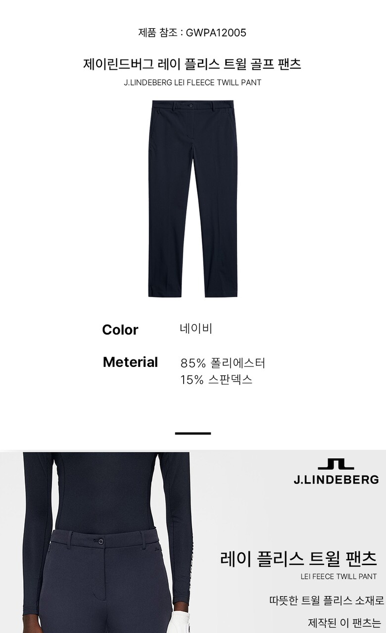제이린드버그 FW24 여성 레이 플리스 기모 트윌 골프 팬츠 네이비 GWPA12005-6855