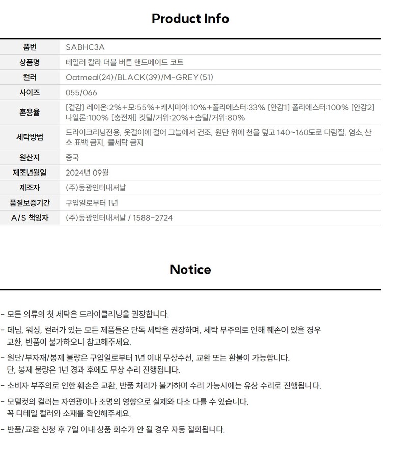 핸드메이드코트 베스트 상품