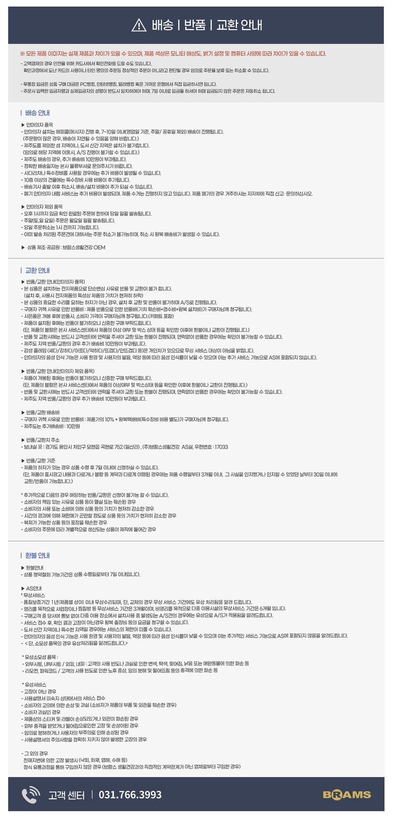 | 10. 품질보증기준 | 공정거래위원회 고시 소비자분쟁해결기준에 준함 |
