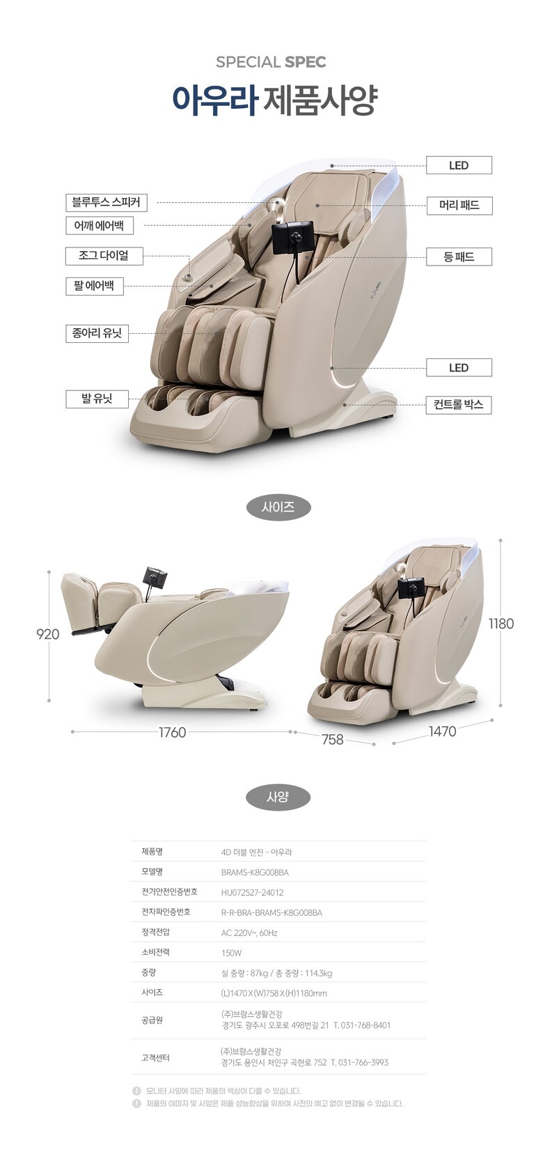 브람스 안마의자 아우라 BRAMS-K8G008BA (무상AS 24개월)