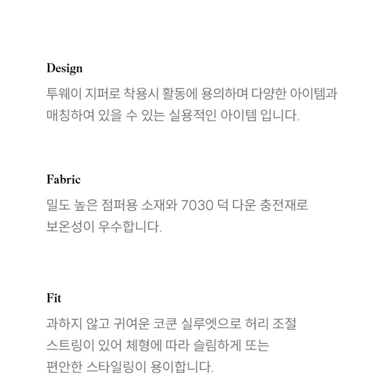 1. 제품 소재 (섬유의 조성 또는 혼용률을 백분율로 표시, 기능성인 경우 성적서 또는 허가서) | 상품상세참조 |