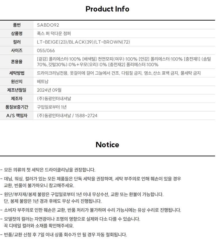 6. 세탁방법 및 취급시 주의사항 | 상품상세참조 |