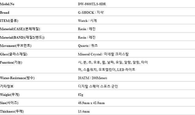 지샥 시계 DW-5600TLS-8DR (DW-5600TLS-8) 5600 시리즈 디지털 스퀘어 남성시계 남자시계 당일발송