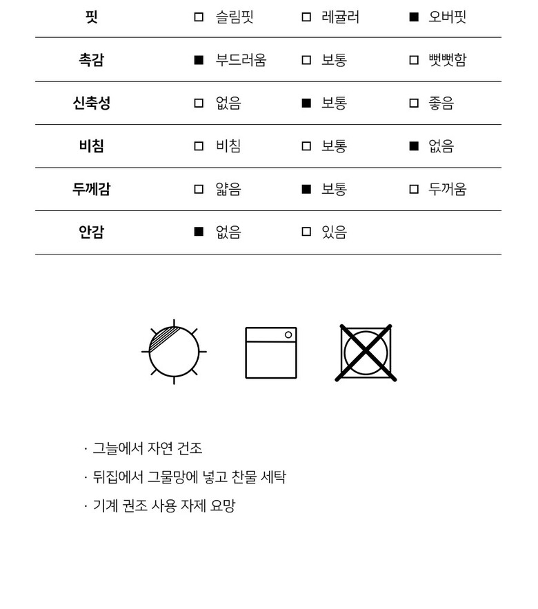 6. 세탁방법 및 취급시 주의사항 | 상품상세참조 |