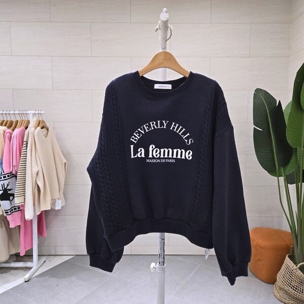 C24L7FTS095_꽈니트 배색 기모맨투맨