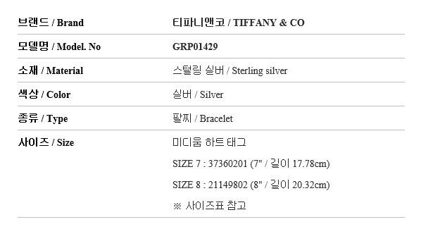 티파니앤코 팔찌 21149802 (GRP01429) 리턴 투 티파니 미디움 하트 태그 참 체인 8in 실버 여성팔찌 당일발