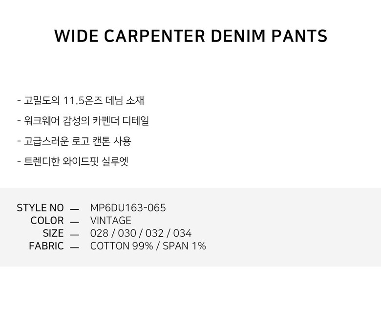 [레이피커스] 와이드 카펜터 데님 팬츠 VINTAGE (MP6DU163-065)