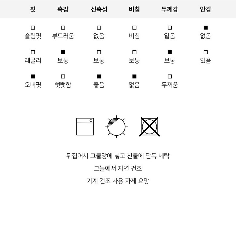6. 세탁방법 및 취급시 주의사항 | 상품상세참조 |