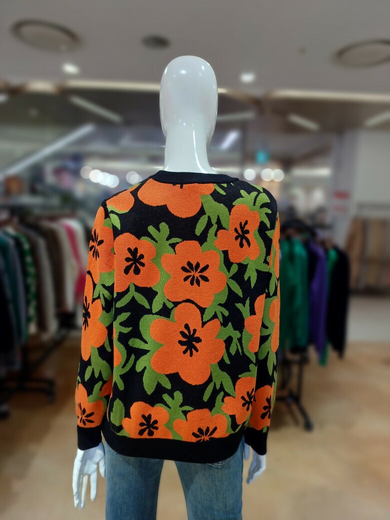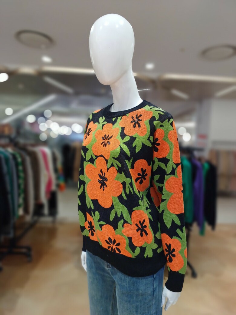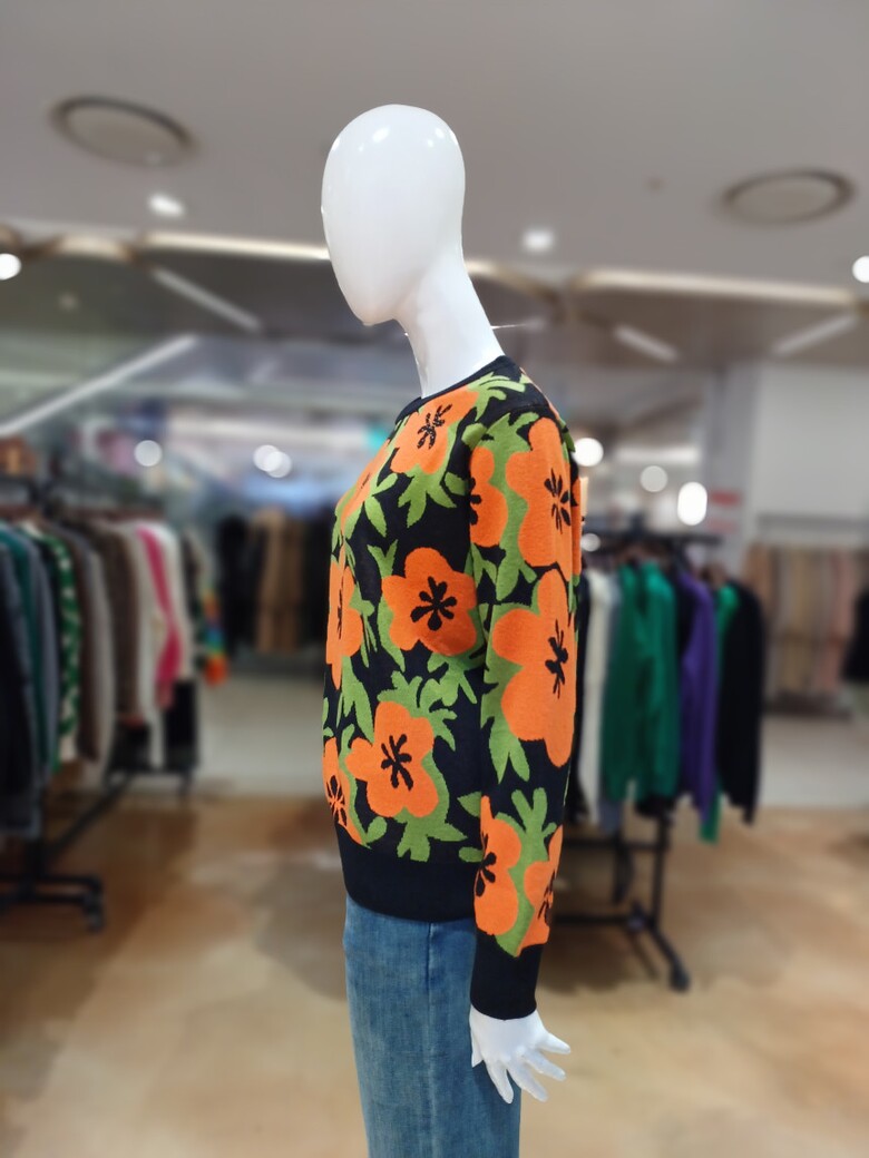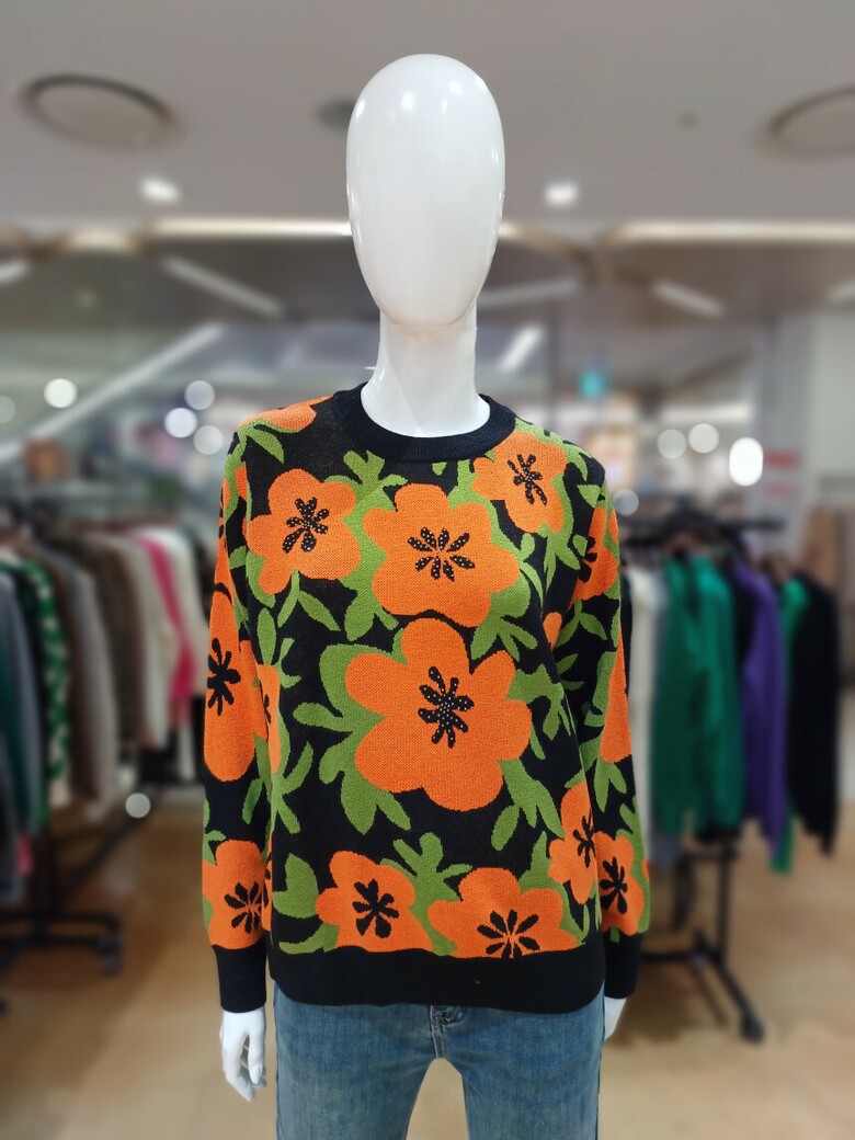 르니앤맥코이 플라워 패턴 배색 라운드넥 니트ML12KN719