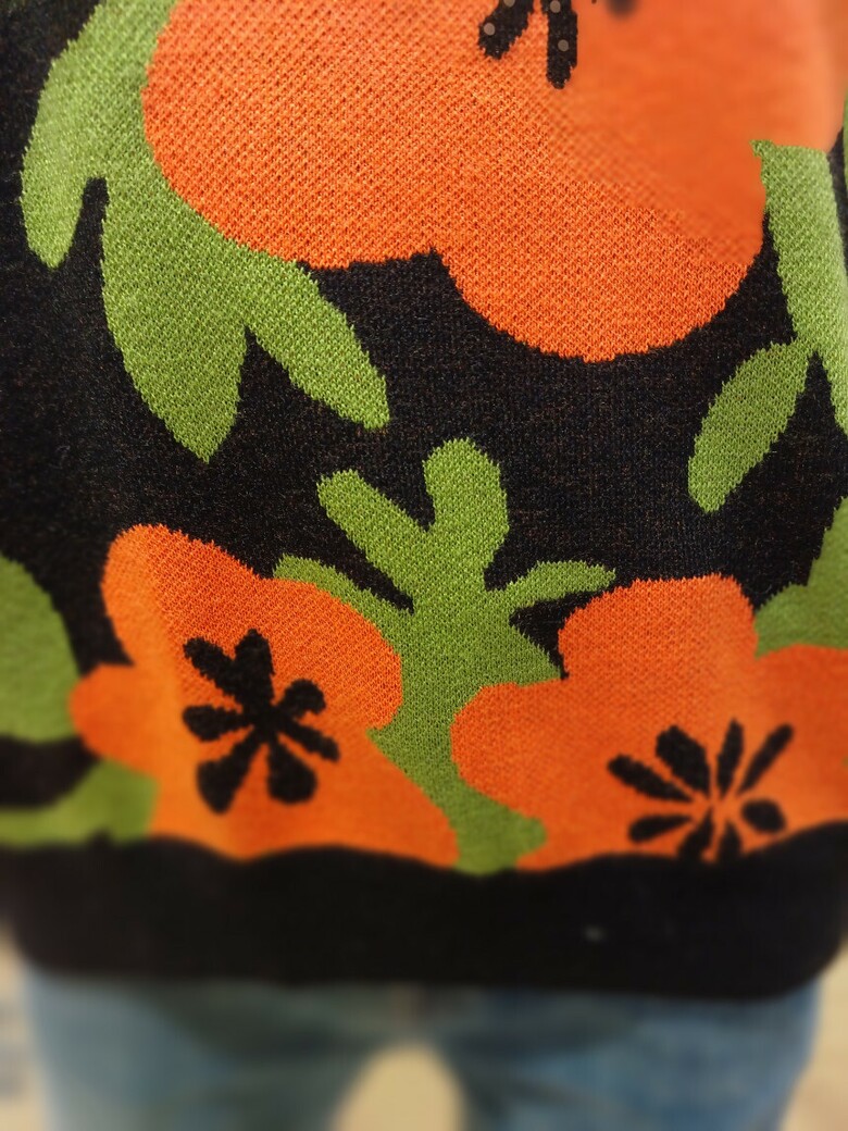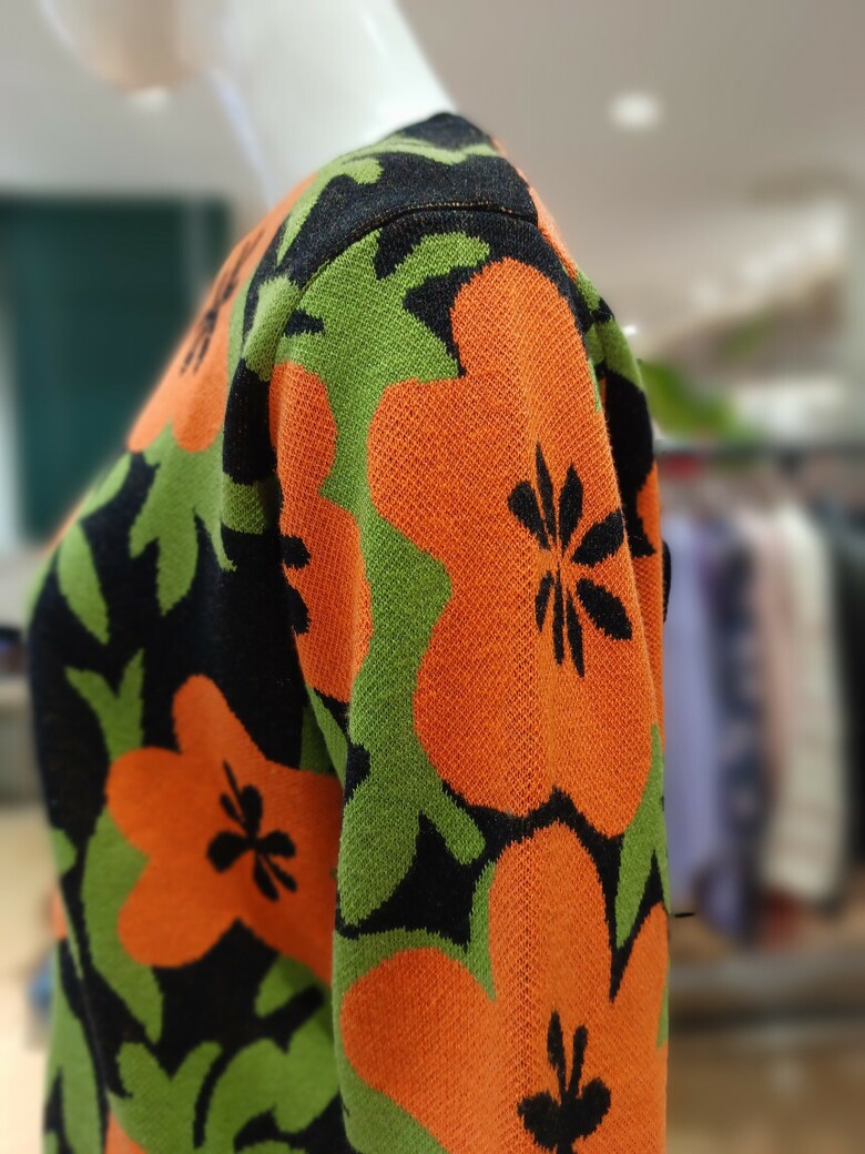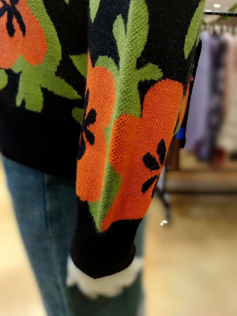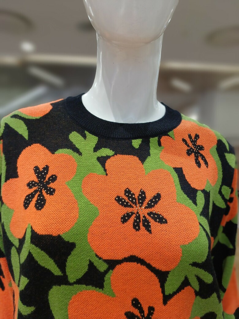 르니앤맥코이 플라워 패턴 배색 라운드넥 니트ML12KN719