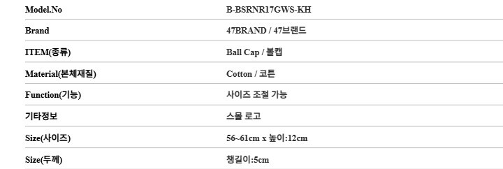 47브랜드 B-BSRNR17GWS-KH NY 뉴욕 양키스 스몰 로고 볼캡