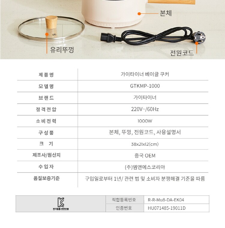 가이타이너 베이글 전기 쿠커 GTKMP-1000