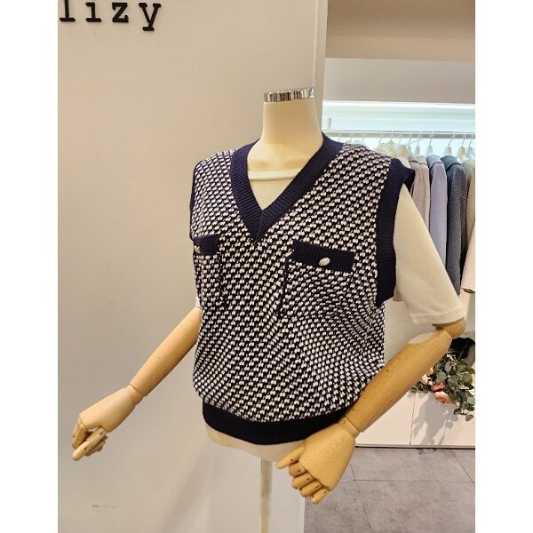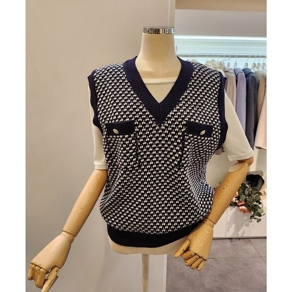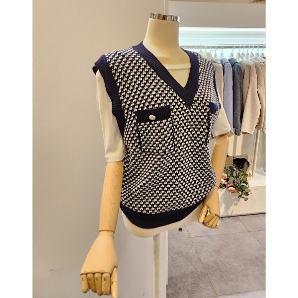 CP1WKV03_양포켓 패턴 브이넥 니트베스트