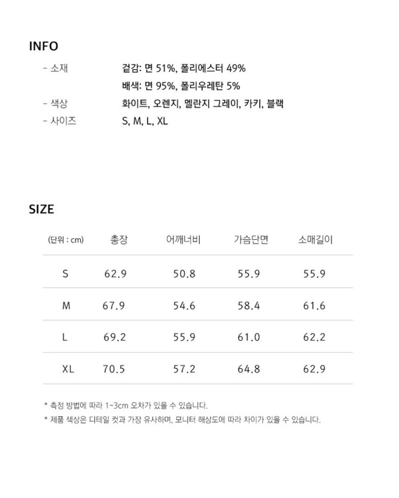 * 마네킹 모양에 따라 좌,우 기장&라인이 틀려 보일 수 있습니다 *