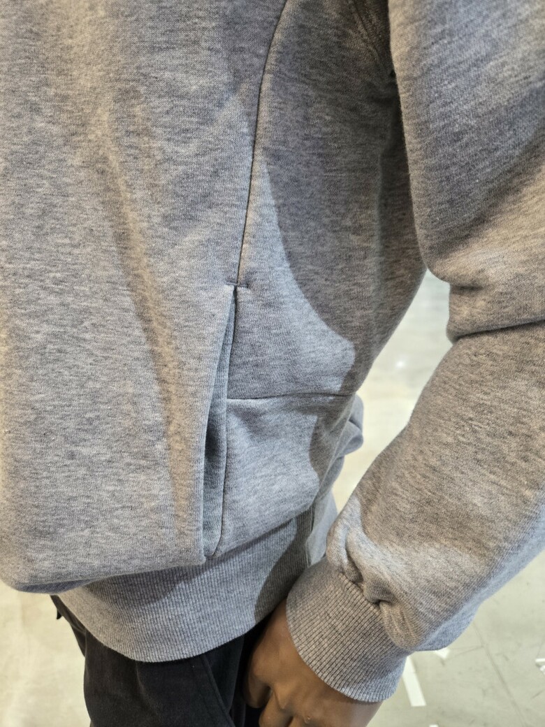 어깨선이 오버이며 활동하기 편한 조금 여유있는 핏이며 자수로 그래픽을 표현하였습니다.