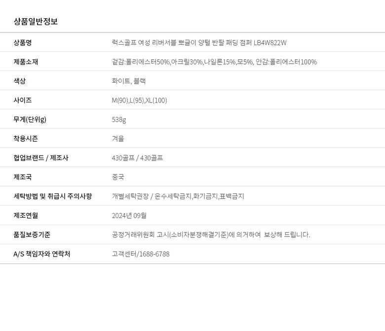 | 6. 세탁방법 및 취급시 주의사항 | 상세이미지 참조 |
