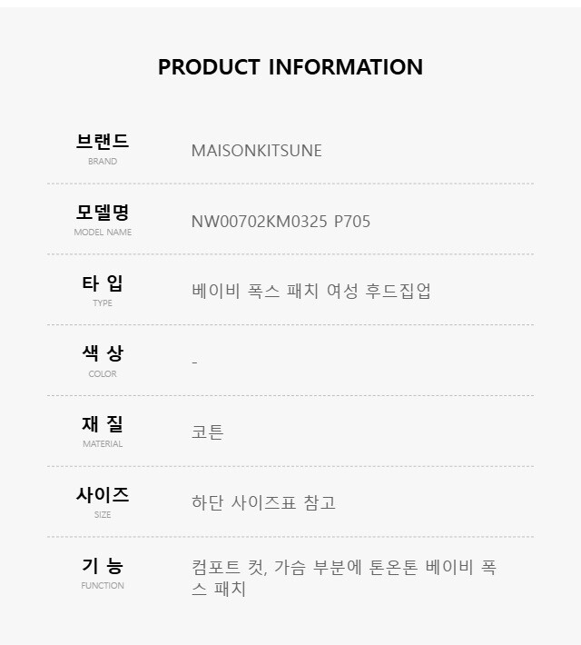 메종키츠네 후드 NW00702KM0325 P705 베이비 폭스 패치 여성후드집업 당일발송