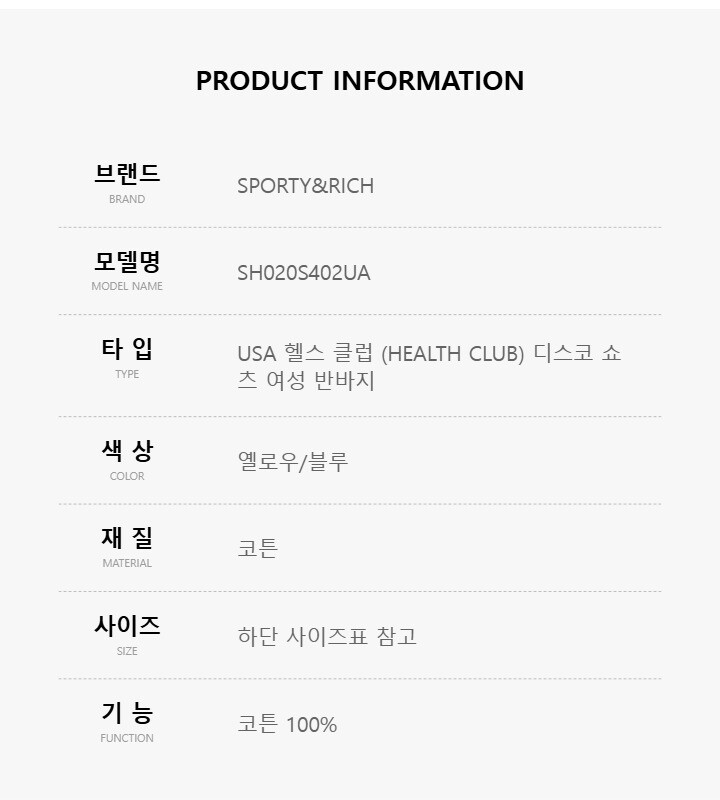 스포티앤리치 SH020S402UA USA 헬스 클럽 (HEALTH CLUB) 디스코 쇼츠 여성 반바지