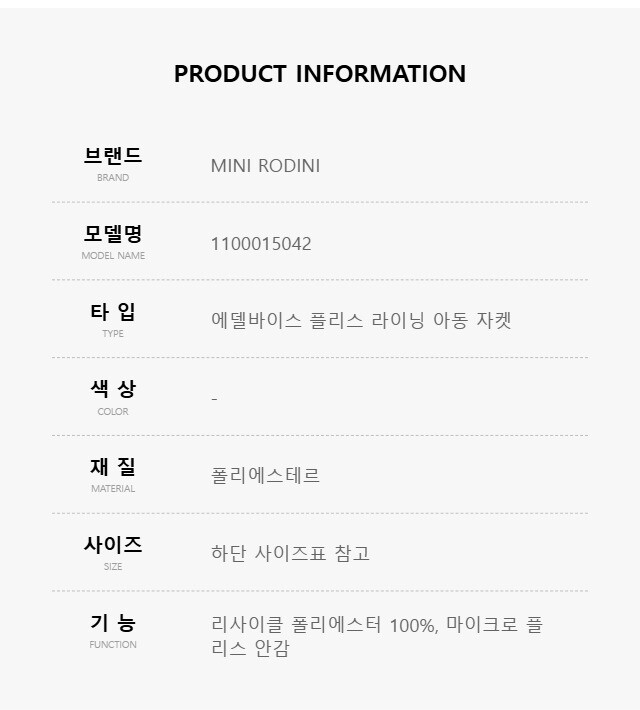 미니로디니 1100015042 (Edelweiss fleece jacket) 에델바이스 플리스 라이닝 아동 자켓