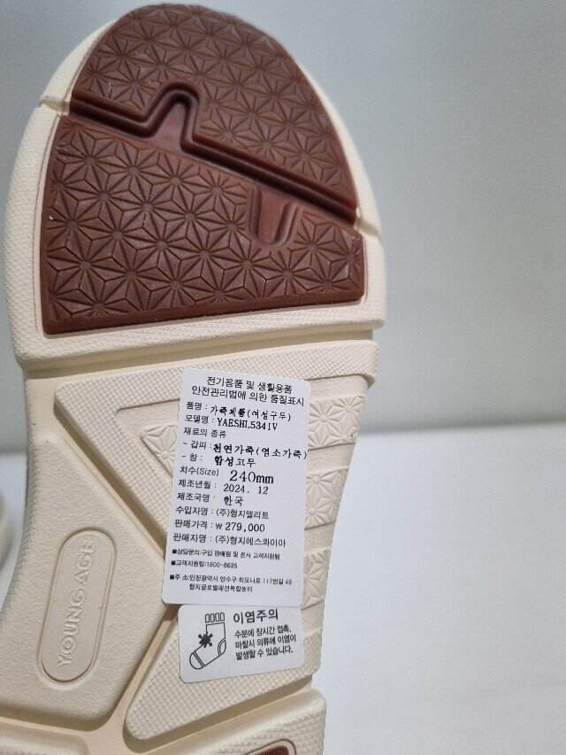 | 1. 제품 소재 (운동화인 경우에는 겉감, 안감을 구분하여 표시) | 염소가죽 |