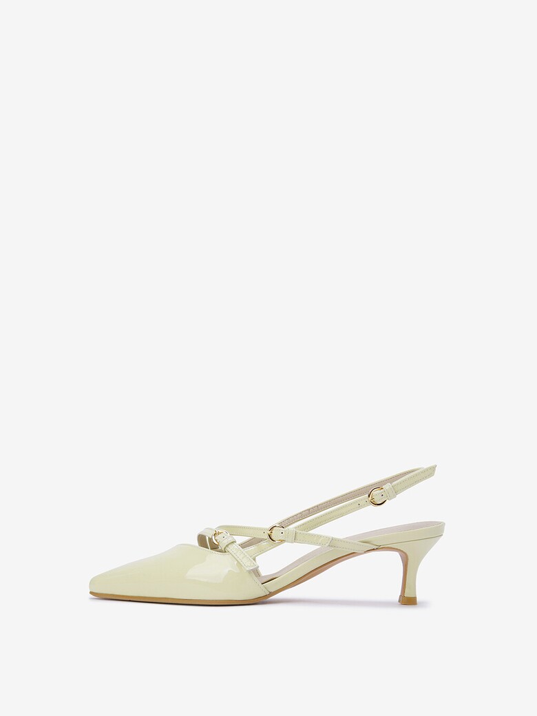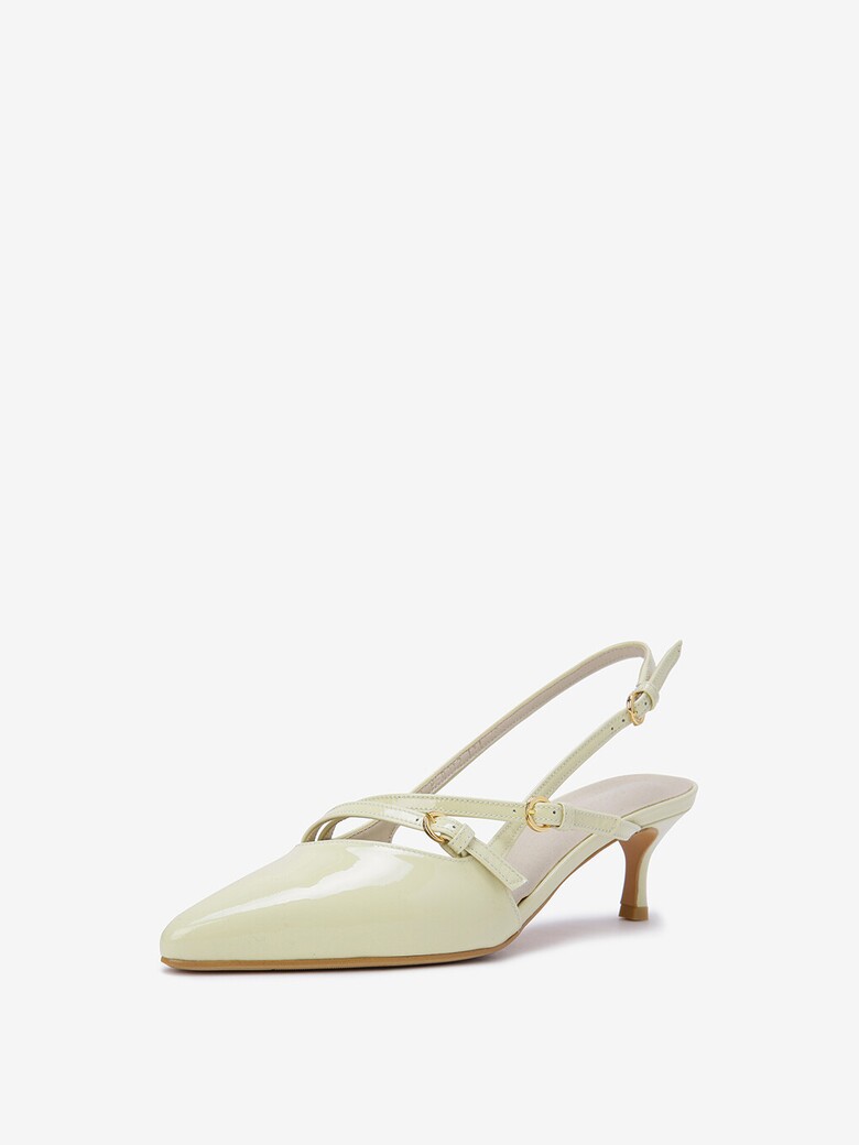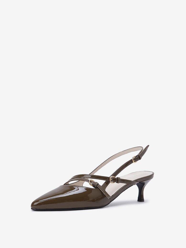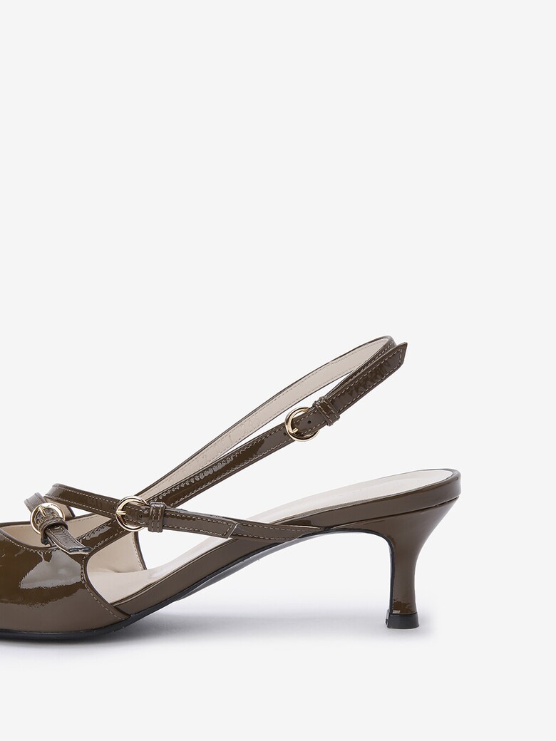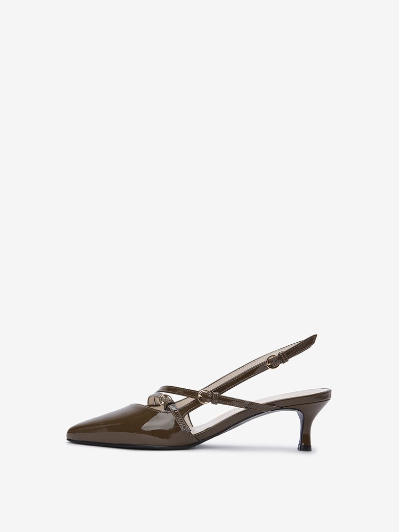 - 발등을 감싸는 스트랩 디테일이 돋보이는 슬링백 힐입니다.