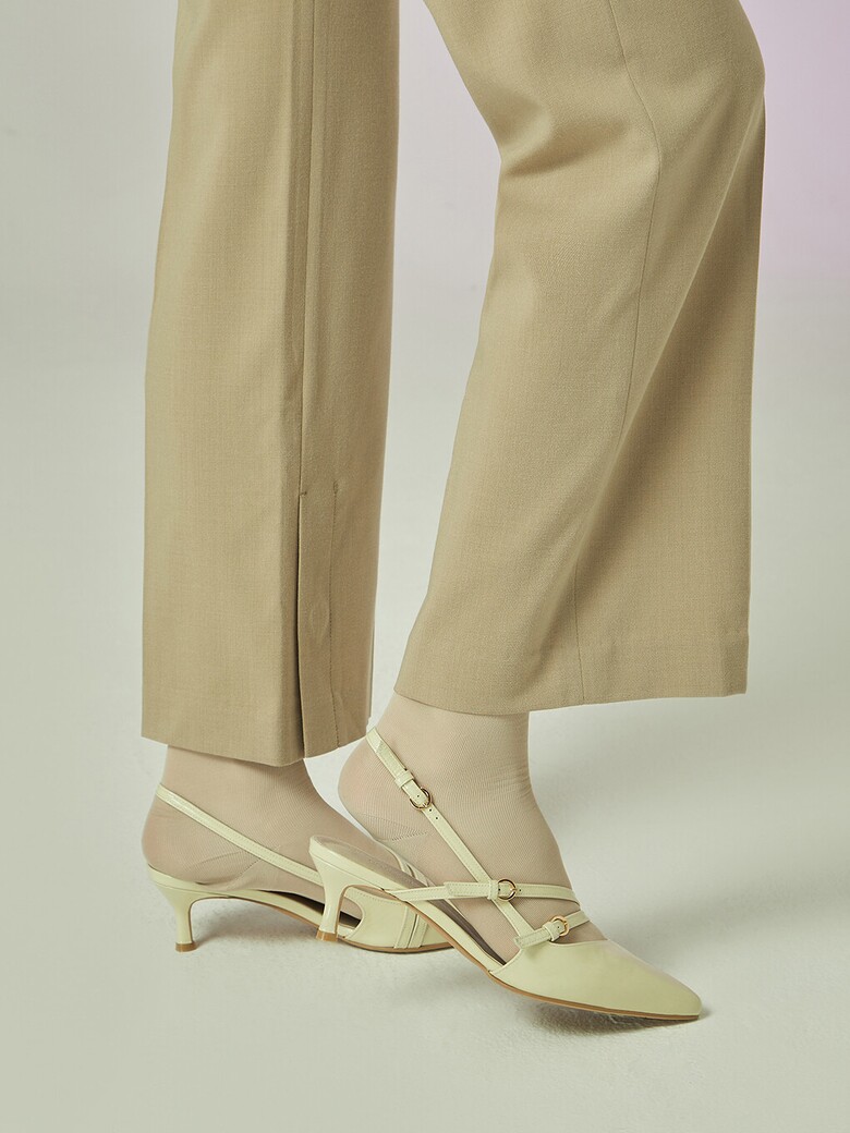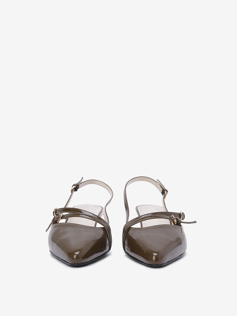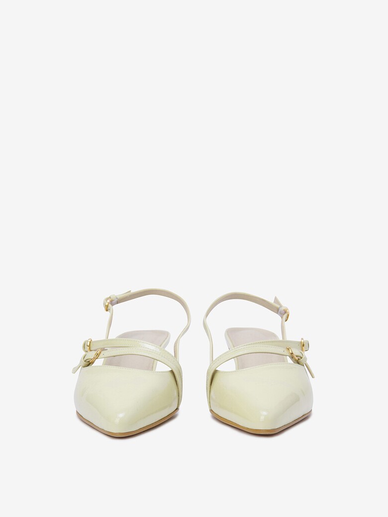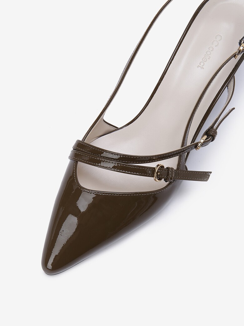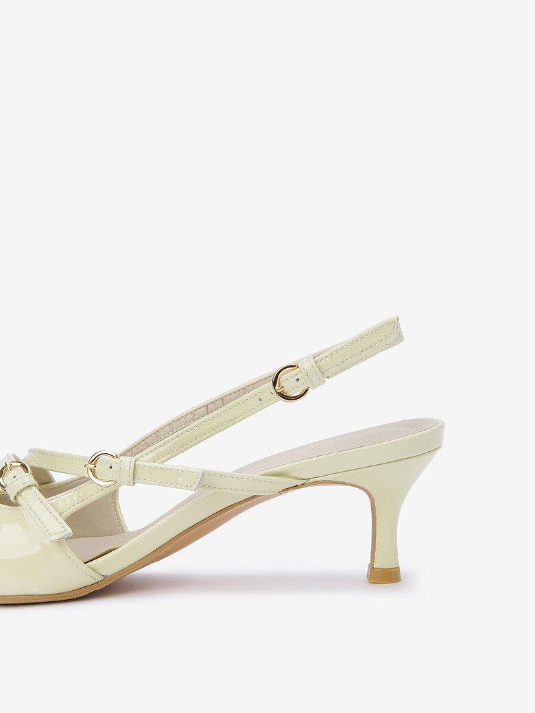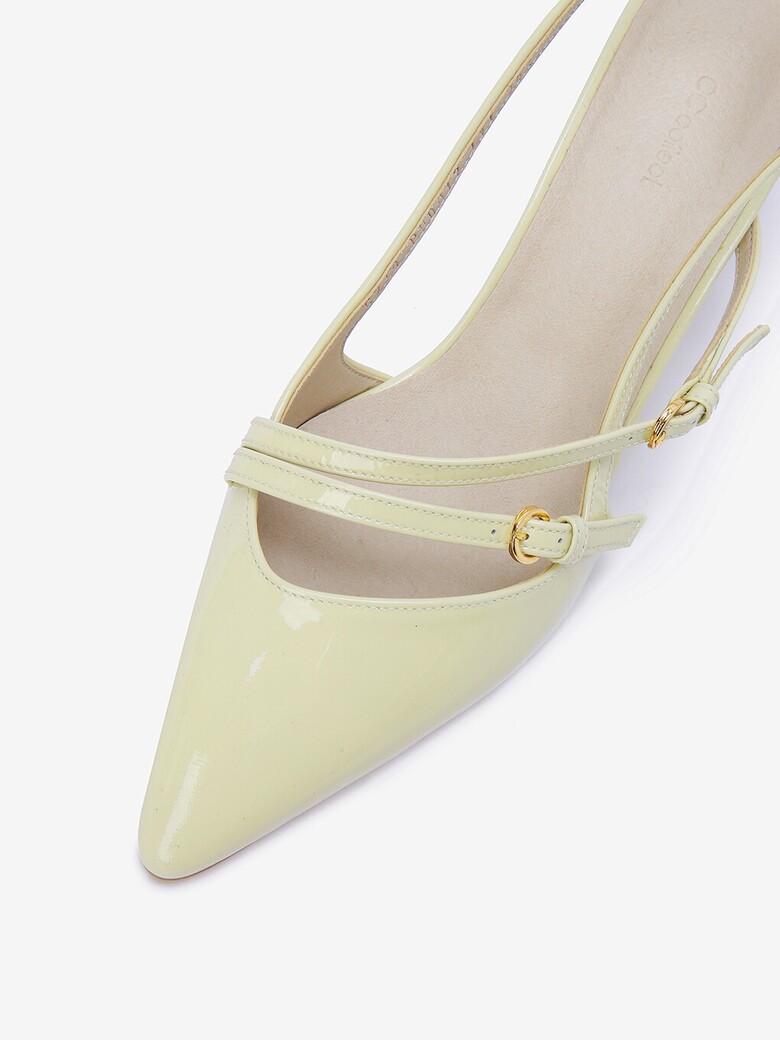 - 발등을 감싸는 스트랩 디테일이 돋보이는 슬링백 힐입니다.