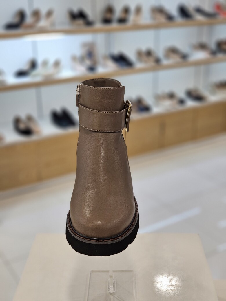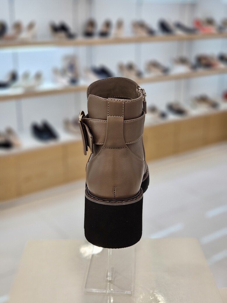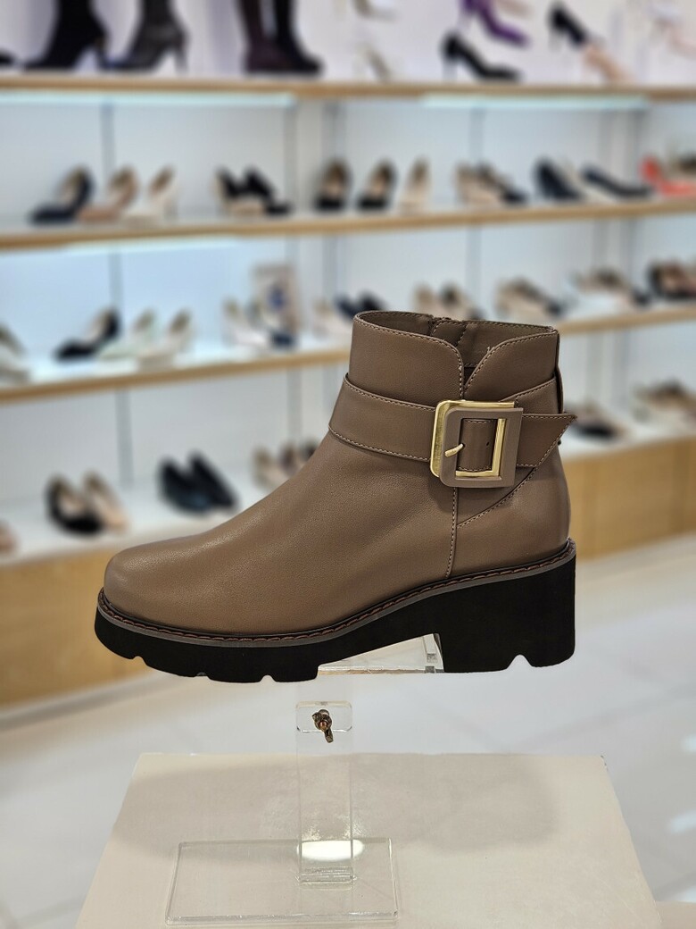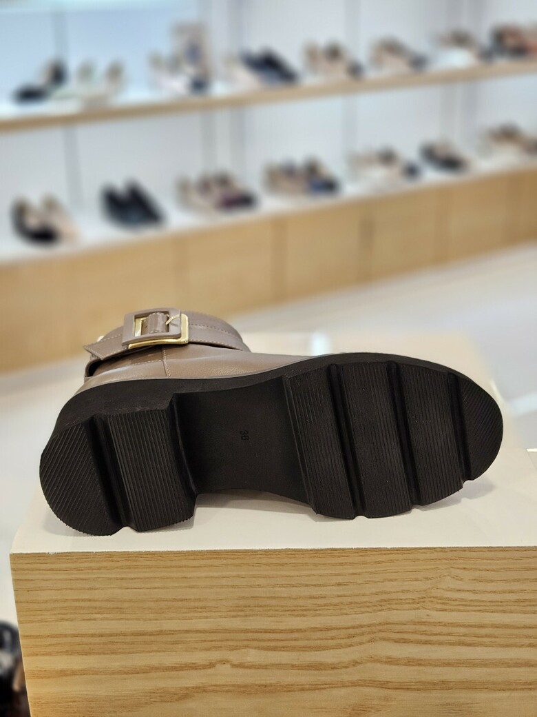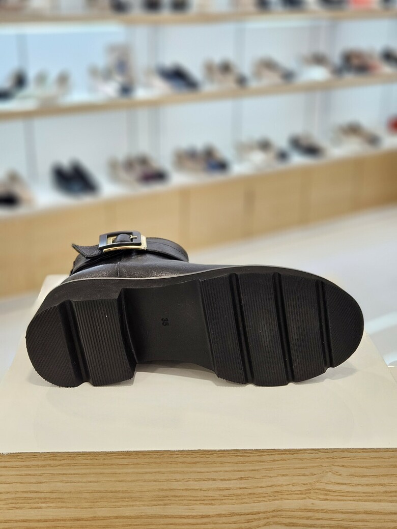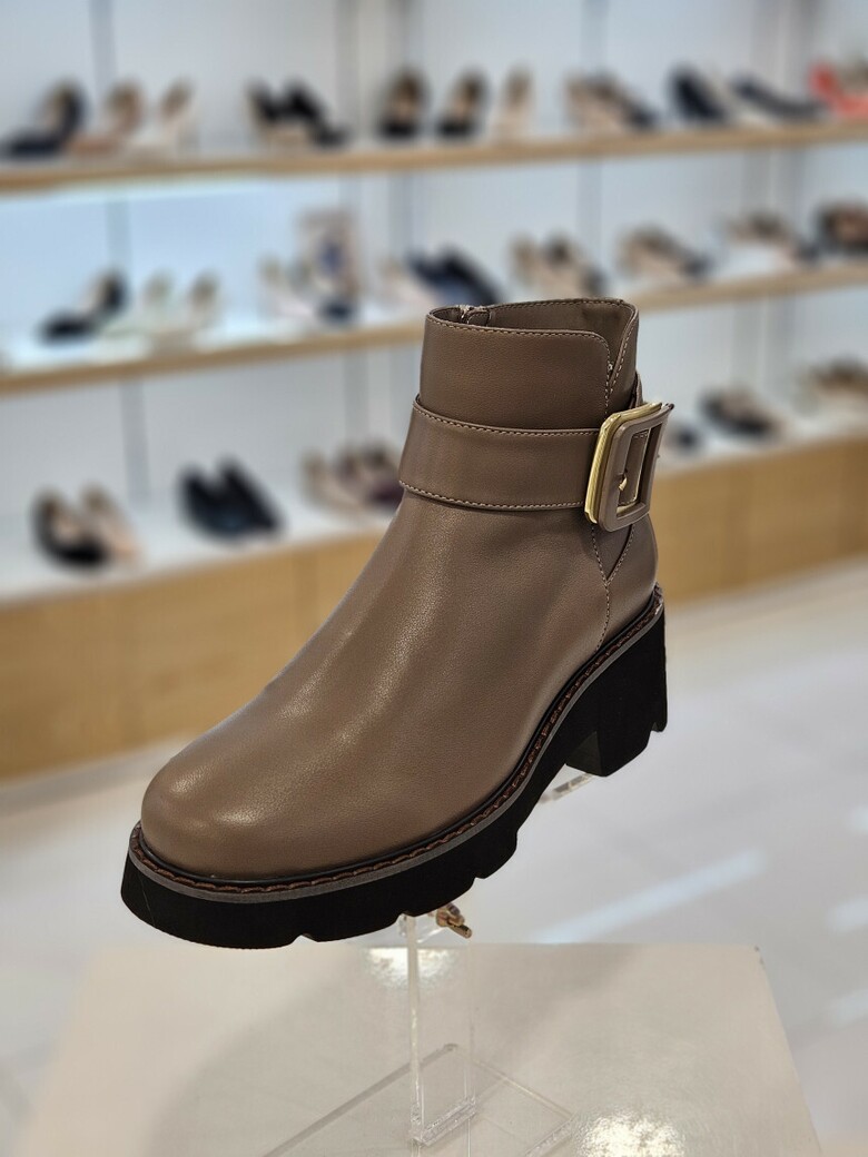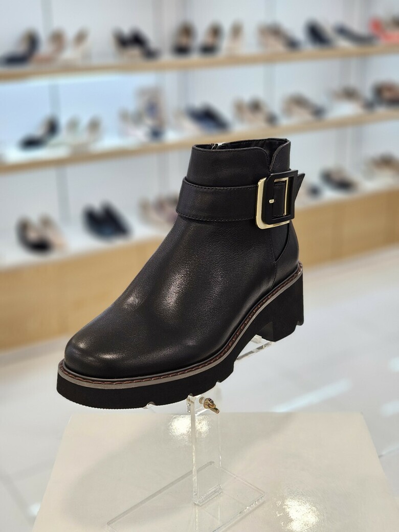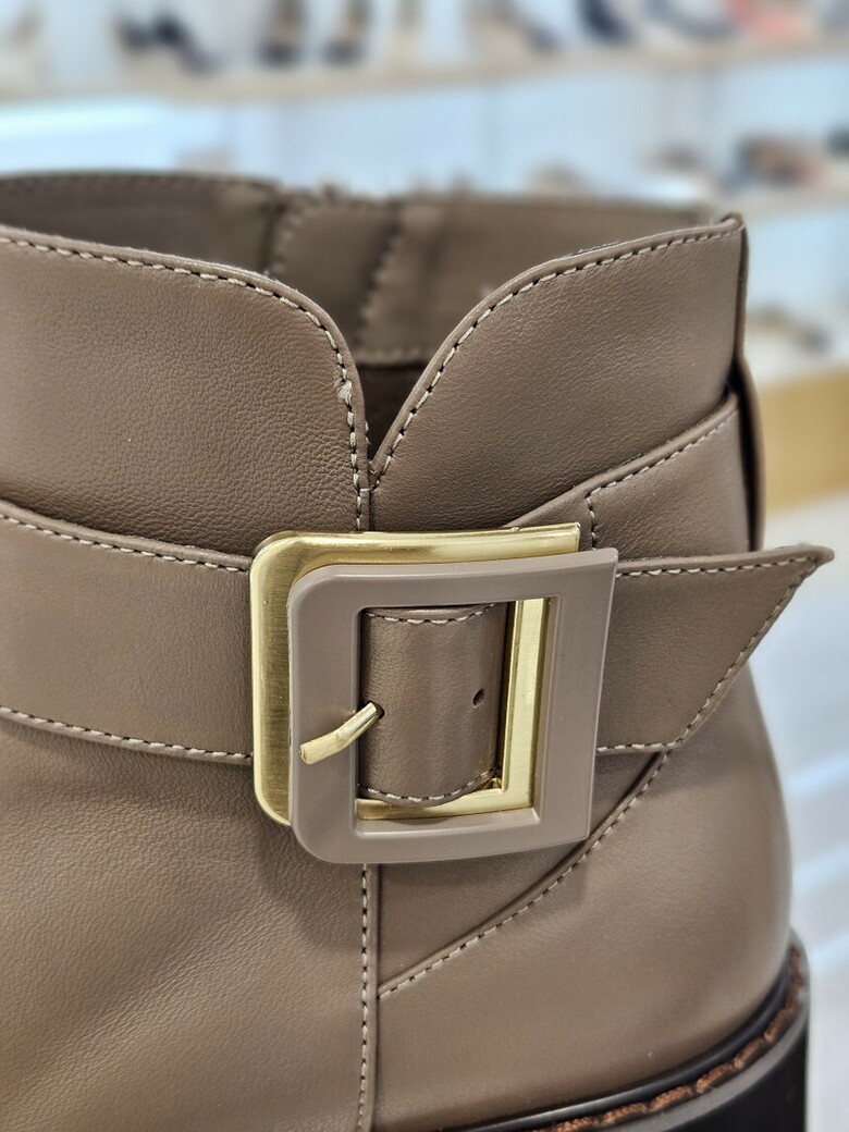 기본 앵클부츠에 투톤 버클장식을 활용해 캐주얼 무드가 돋보이는 앵클부츠
