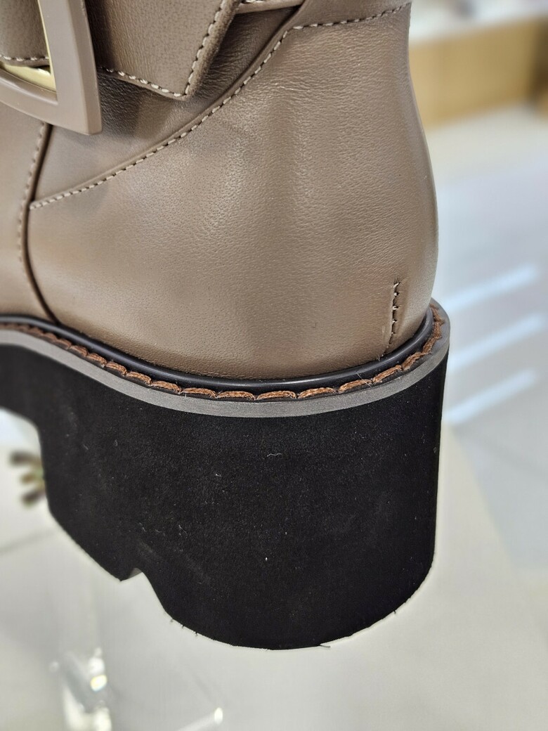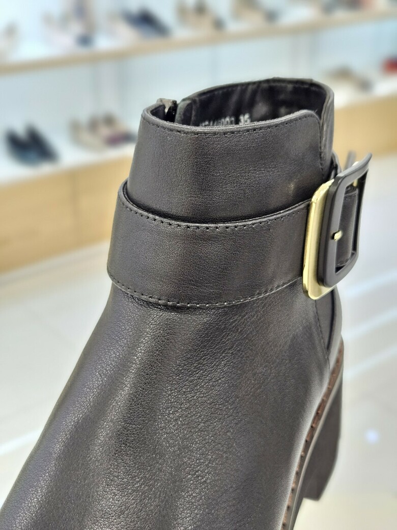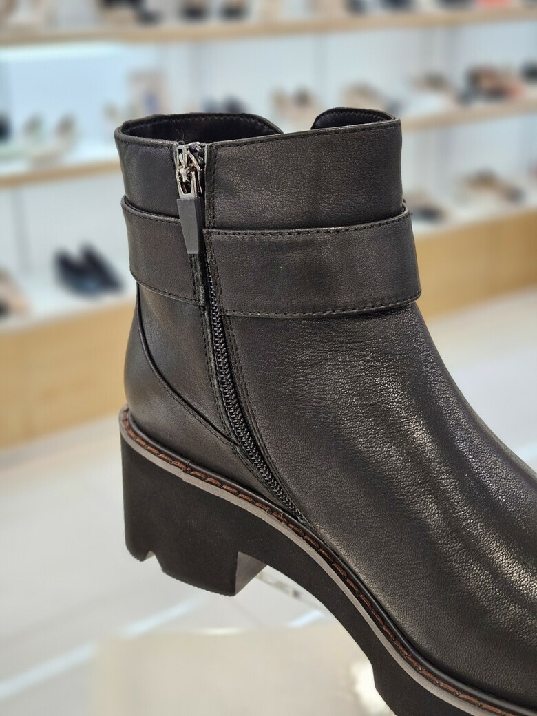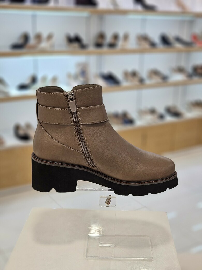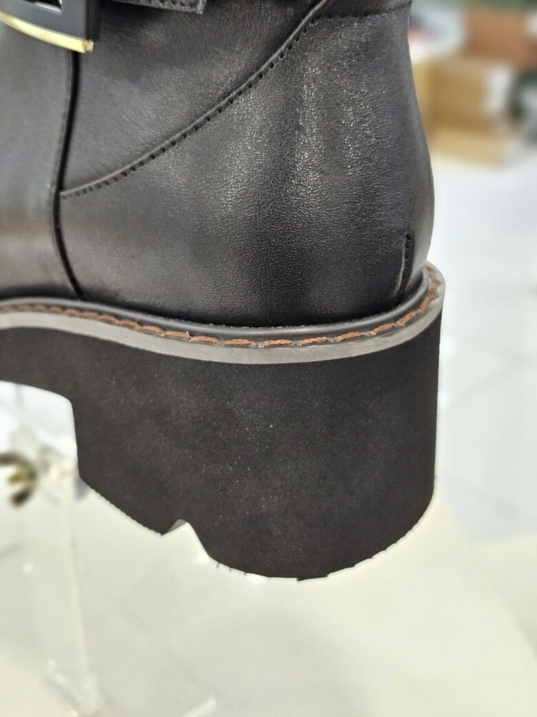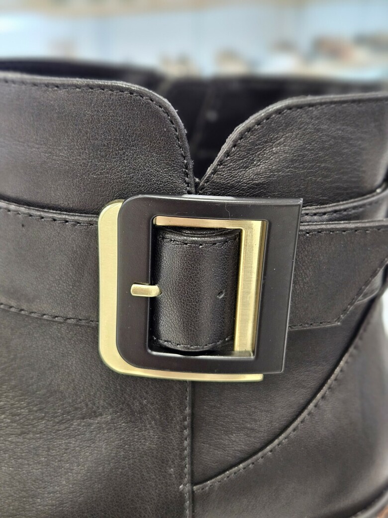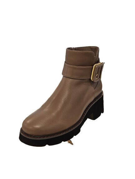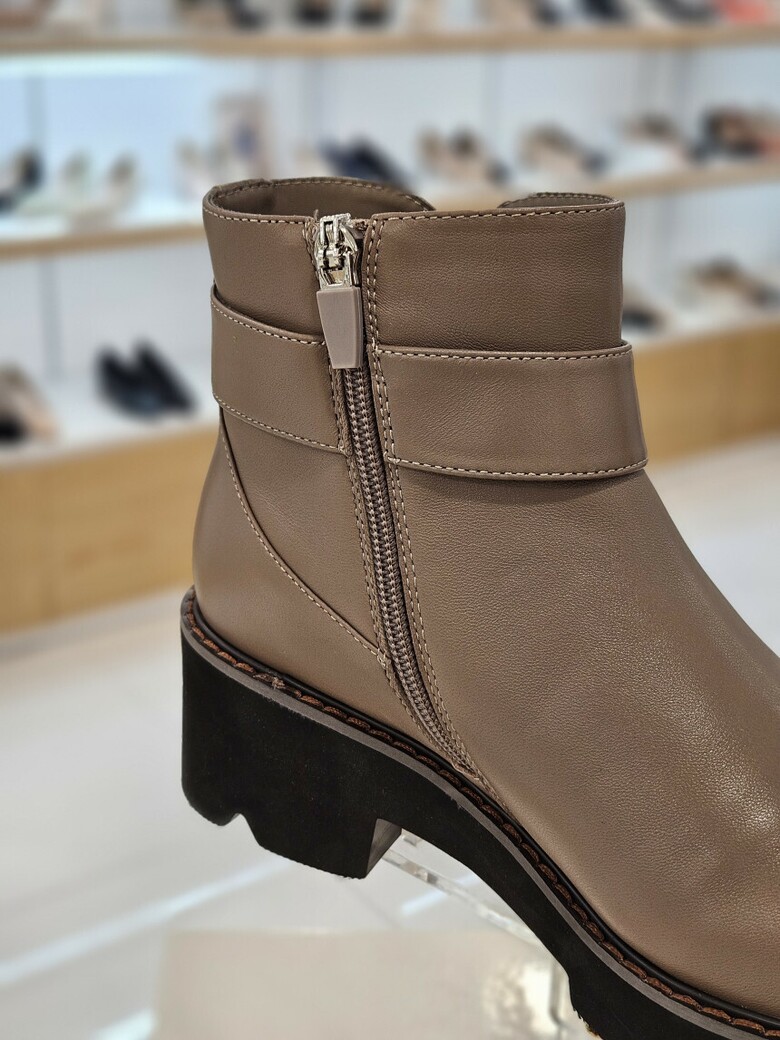 기본 앵클부츠에 투톤 버클장식을 활용해 캐주얼 무드가 돋보이는 앵클부츠