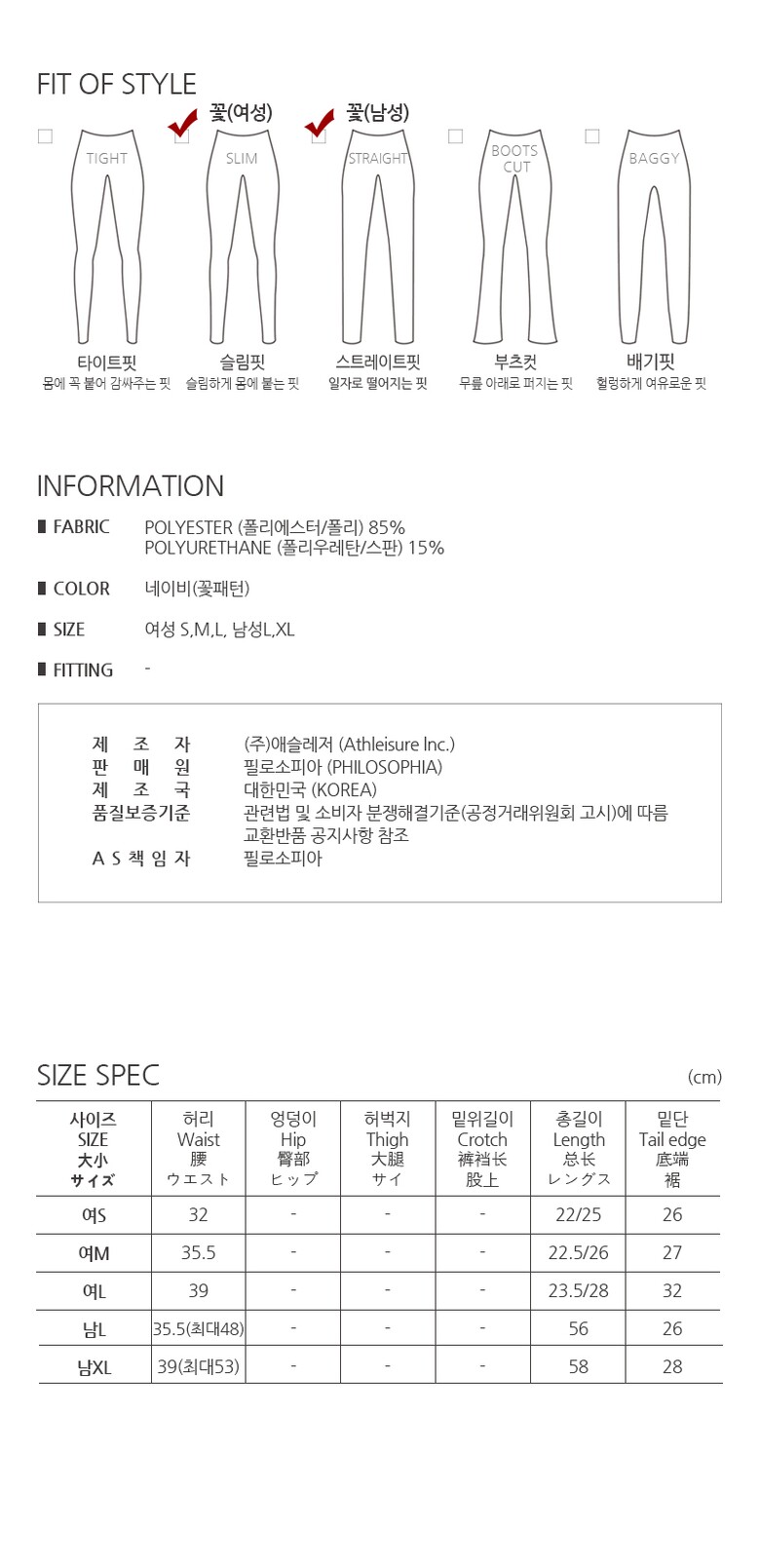 | 1. 제품 소재 (섬유의 조성 또는 혼용률을 백분율로 표시, 기능성인 경우 성적서 또는 허가서) | 폴리에스테르 85%, 폴리우레탄 15% |