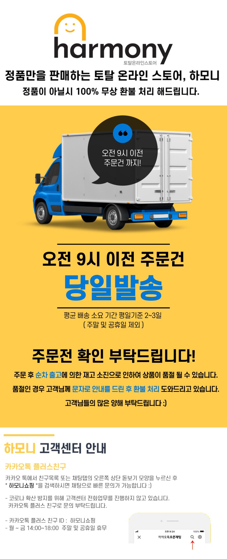 상품불량에 의한 반품, A/S, 품질보증 및 피해보상 등에 관한 사항은 소비자 분쟁해결기준(공정거래위원회 고시) 구매자가 미성년자인 경우에는 상품 구입시 법정대리인이 동의하지 아니하면 미성년자 본인 또는 법정대리인이 구매취소 할 수 있습니다. |