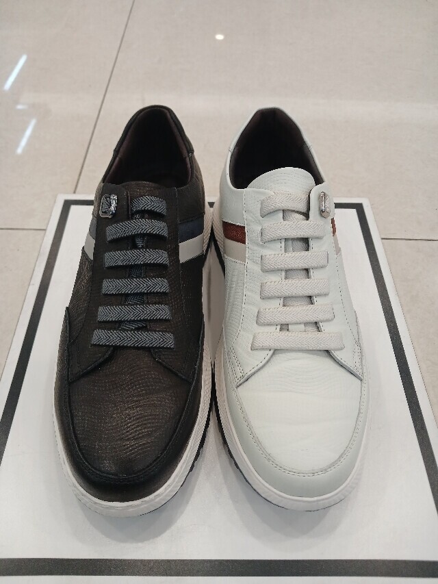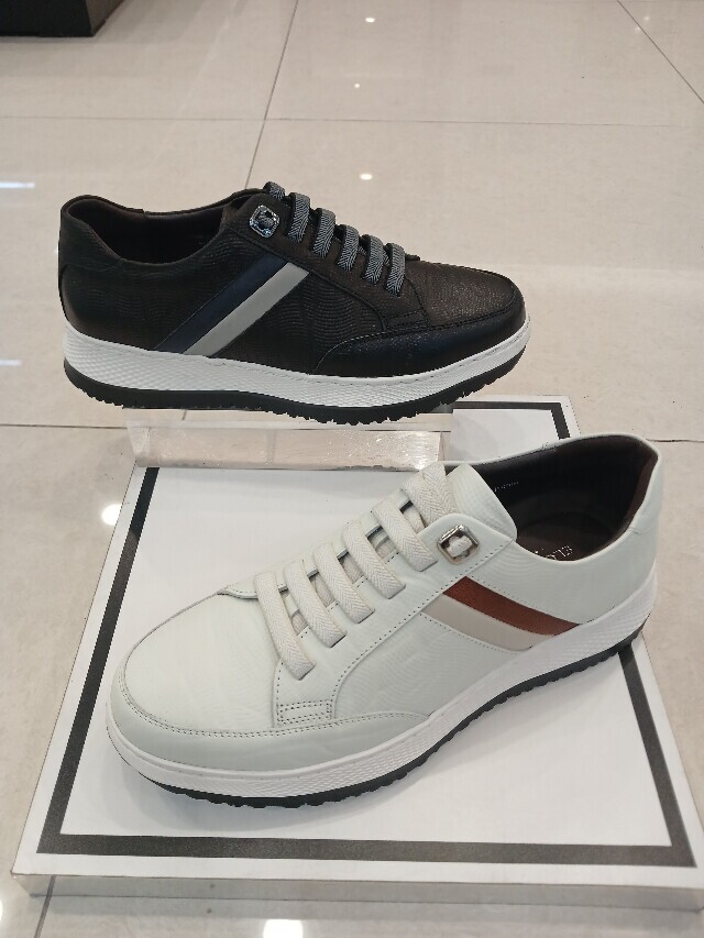 굽높이 약3.5cm의 높이에 천연소가죽소재를 사용하여 제작된 남성 캐쥬얼 스니커즈입니다