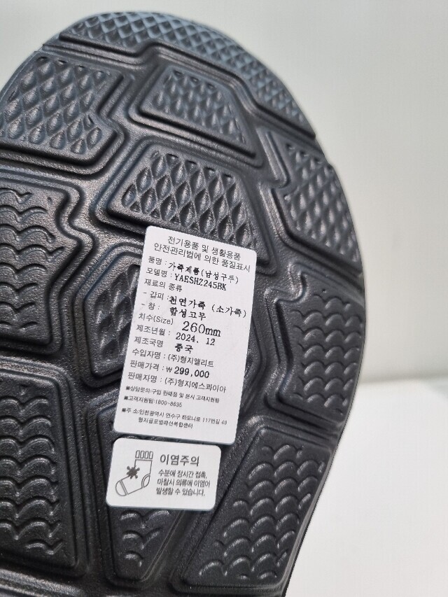 | 1. 제품 소재 (운동화인 경우에는 겉감, 안감을 구분하여 표시) | 소가죽 |