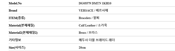 베르사체 DG05579 DMTN 1KH10 메두사 더블 브레이드 레더 가죽 팔찌