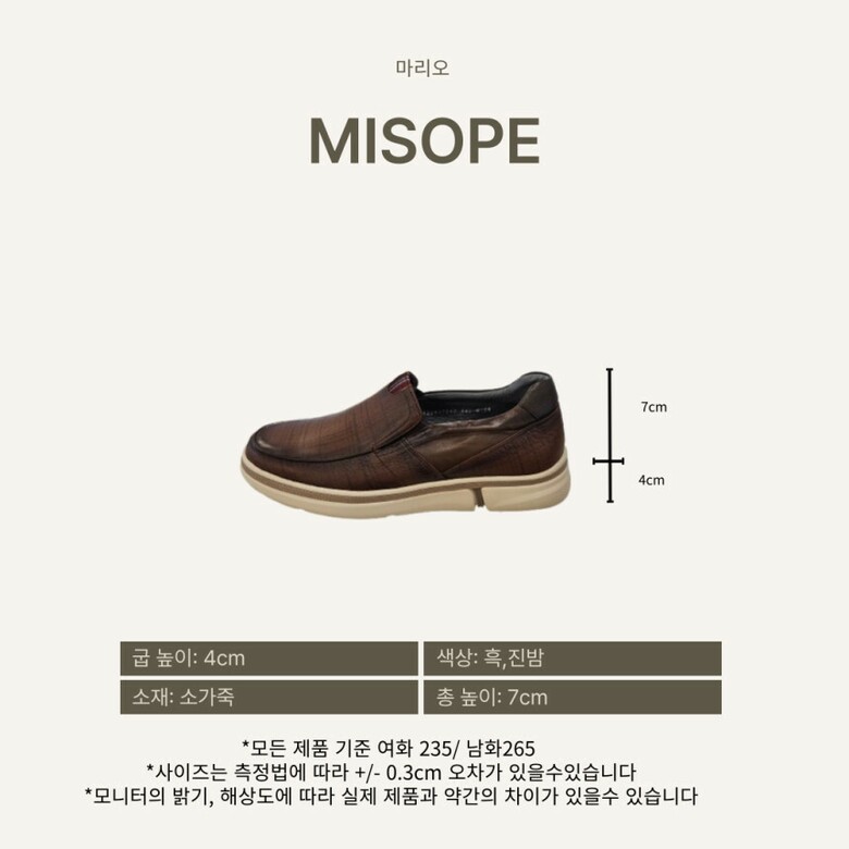 부드러운 오플 가죽(소가죽)으로 제작 되어 편하게 착화 하기가 좋으며